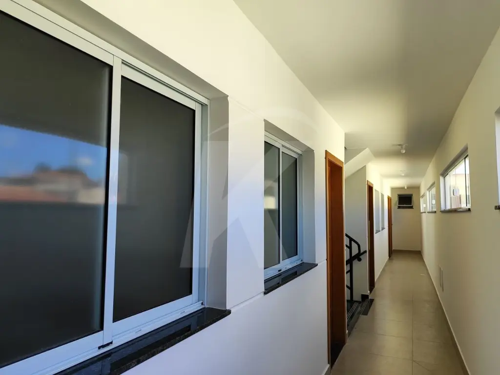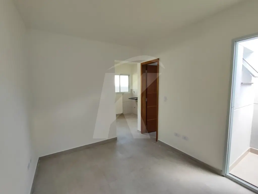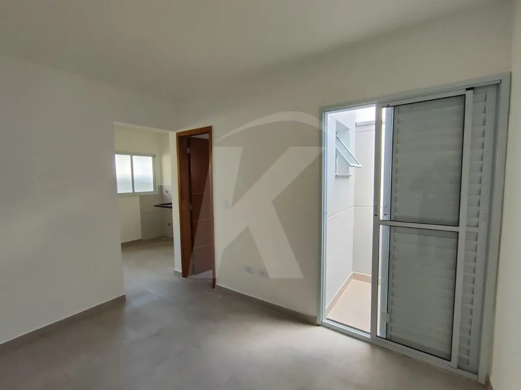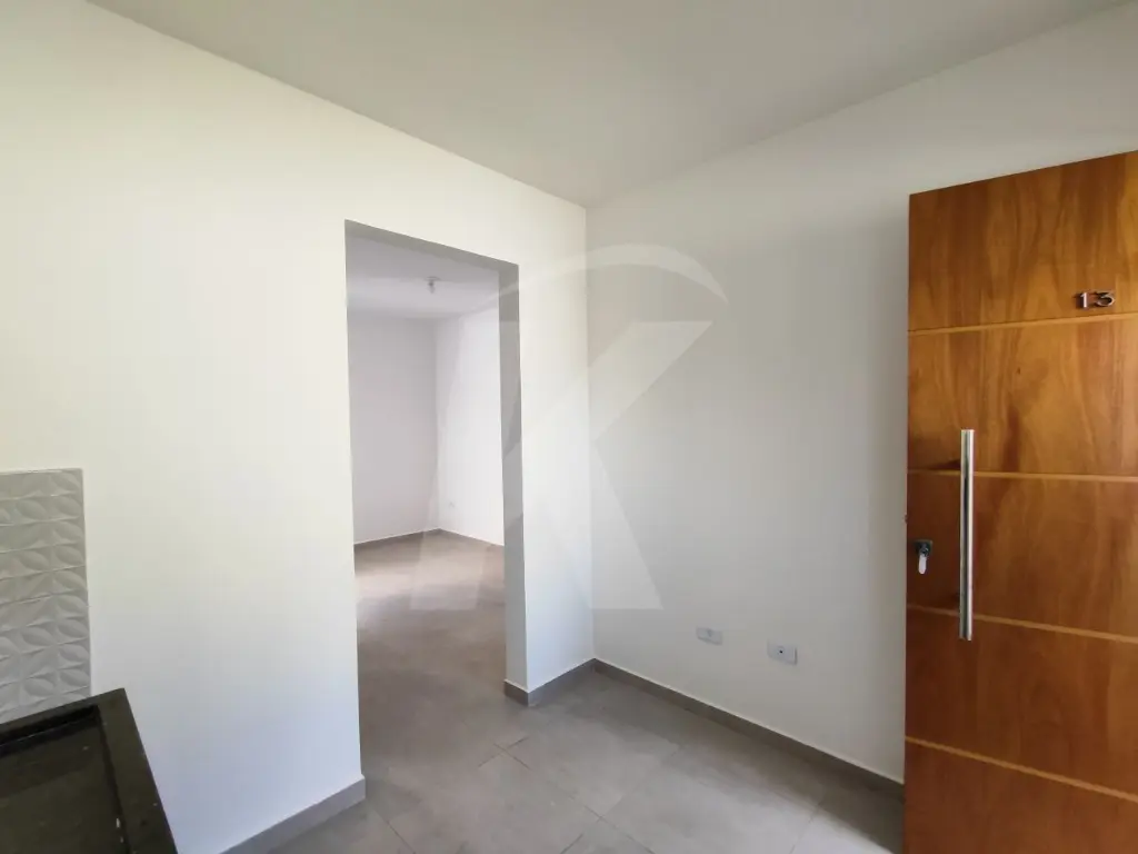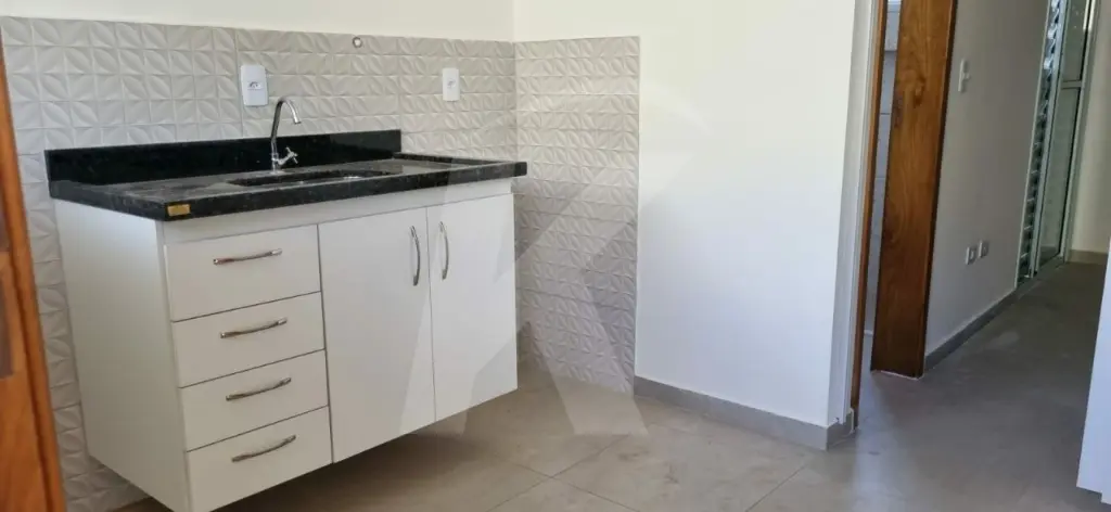 Apartamento novo em condomínio fechado, medindo aproximadamente 30m² com 1 dormitório, cozinha, banheiro com box e sacada.