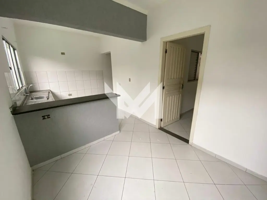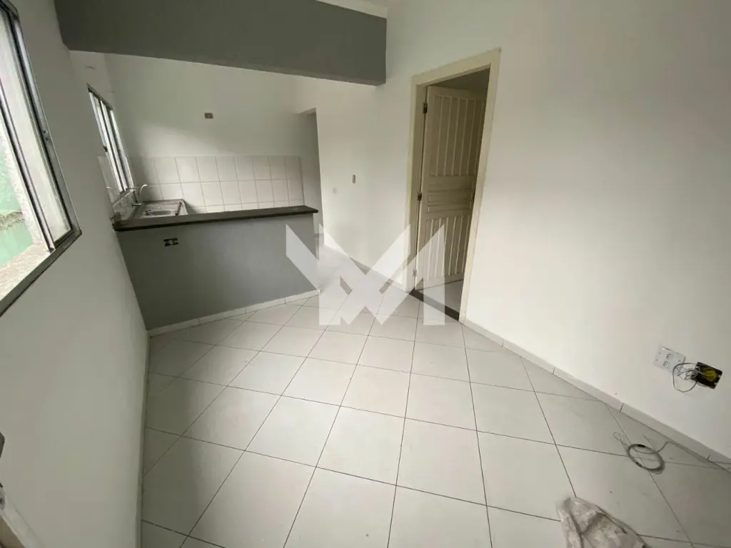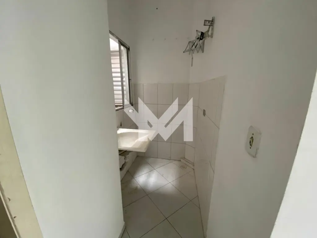 Apartamento com 1 quarto, sala, cozinha americana, banheiro e área de serviço.