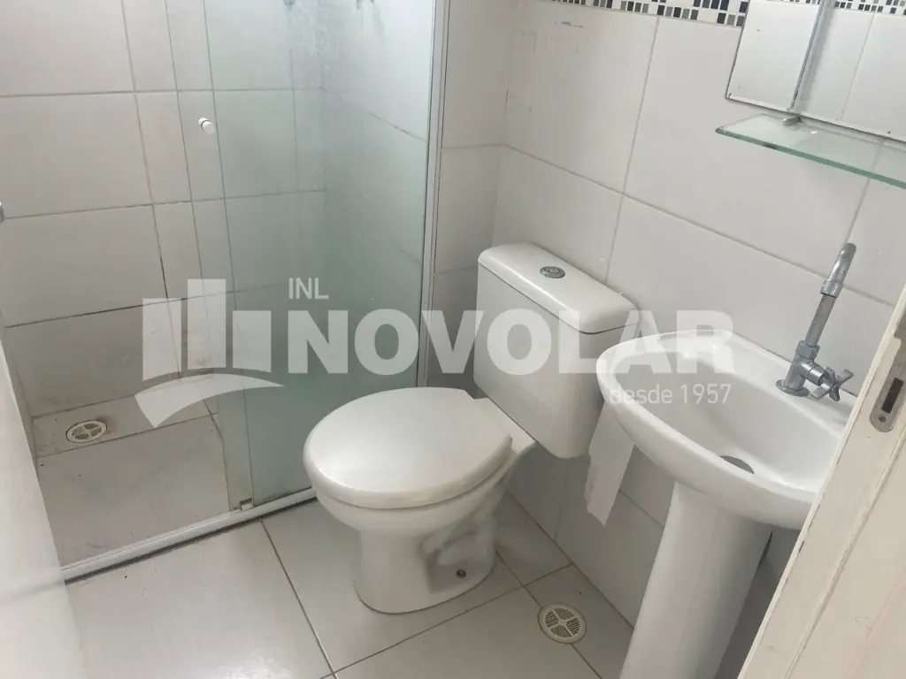 O banheiro social é moderno, equipado com box de vidro, e a área de serviço O apartamento é revestido com piso frio, o que facilita a manutenção.
