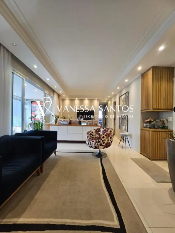 3 suítes com living ampliado, roupeiro na área íntima... Living para dois amplos ambientes, varanda gourmet com churrasqueira, lavabo, cozinha planejada, área de serviço com banheiro,
