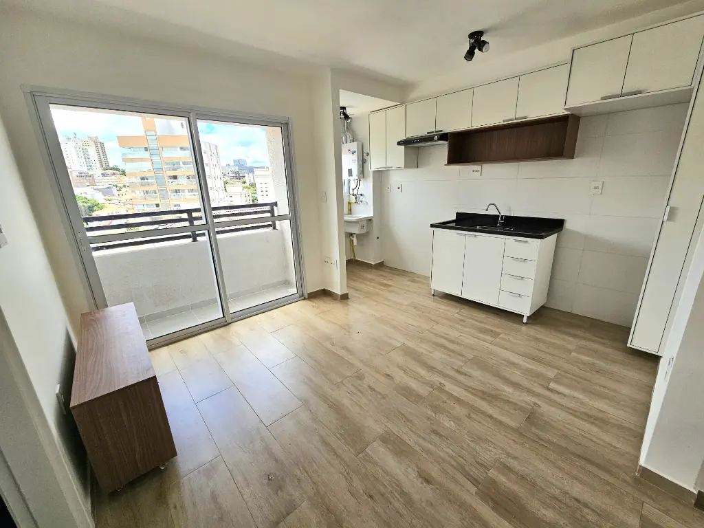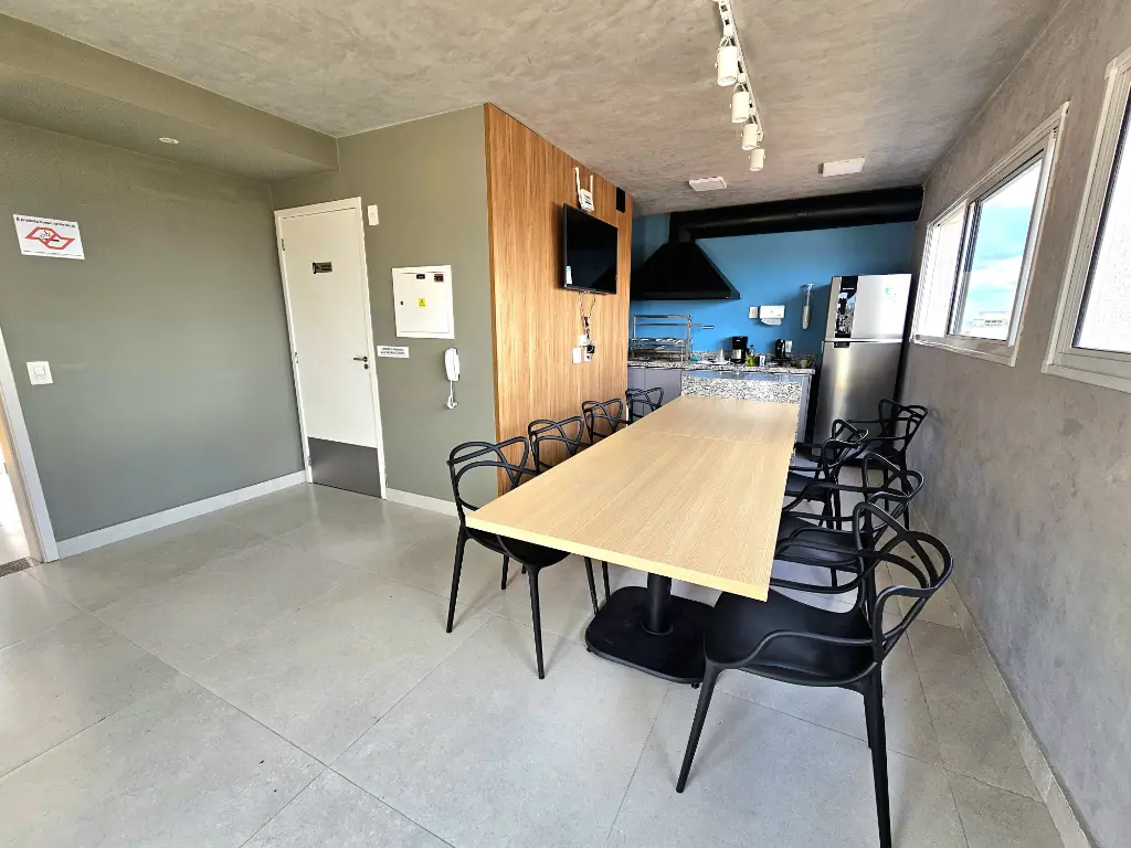 Apartamento SEMINOVO com 1 SUÍTE, sala, cozinha, banheiro e terraço.