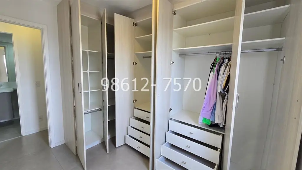 Sala com painel e cortinas, cozinha com armários e filtro de água, lavanderia com armários e bem ventilada, banheiro com chuveiro a gás, além de 1 vaga de garagem livre e fixa.