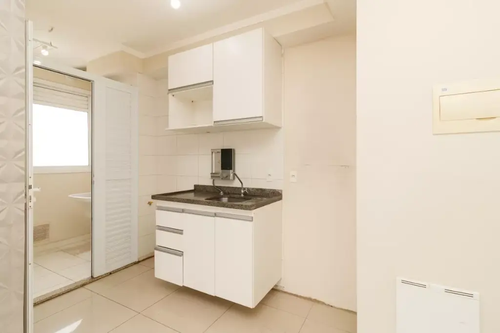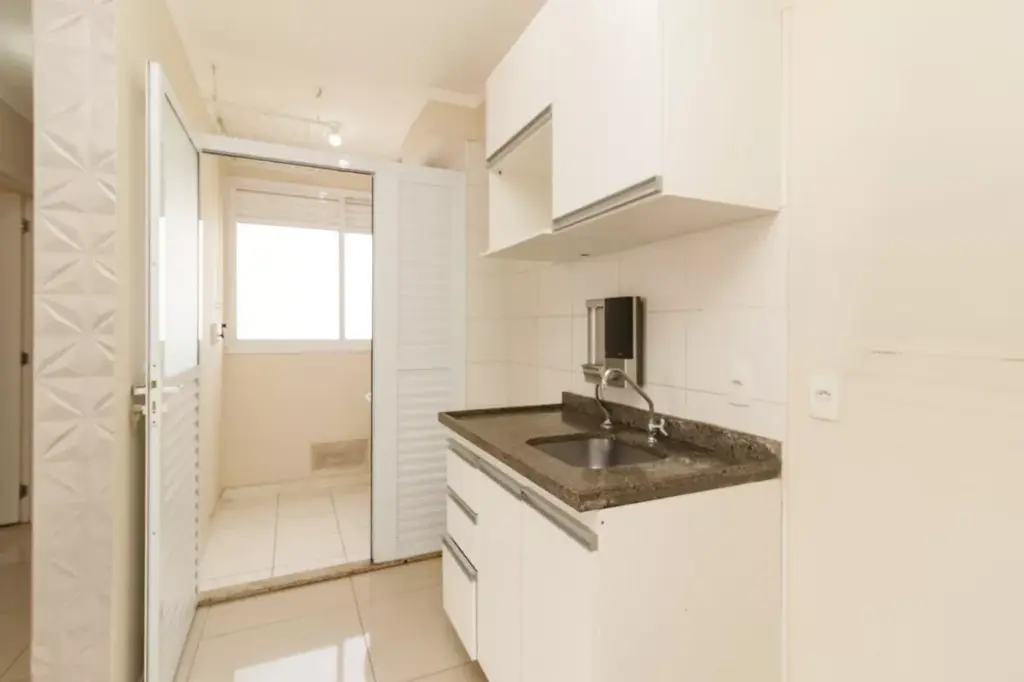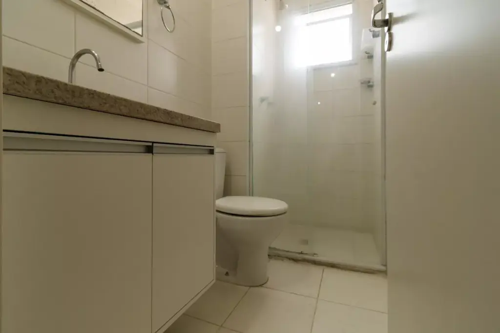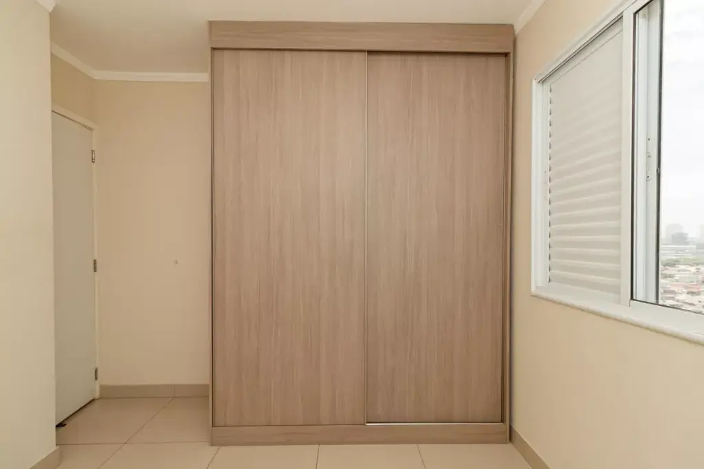 Entrar em um apartamento onde a luz bate na sala e se estende até a varanda muda o ritmo do dia logo cedo. O piso em porcelanato reflete essa claridade e traz uma sensação de limpeza visual que facilita a rotina de quem não tem tempo a perder. Aqui, a marcenaria já resolveu a parte chata da mudança: os armários na cozinha e os guarda-roupas nos dormitórios estão prontos para uso, otimizando cada um dos 47 metros quadrados de forma inteligente. É o tipo de espaço que faz sentido para quem busca eficiência sem abrir mão de uma estrutura sólida de moradia na Vila Medeiros.