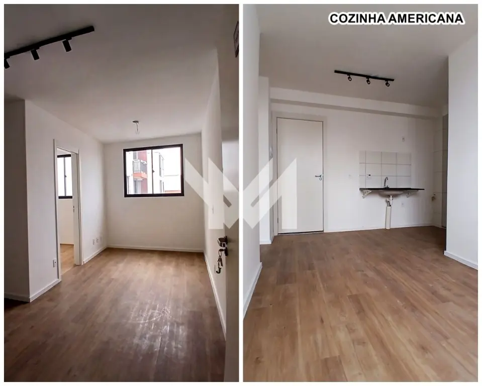 Apartamento com 2 dormitório, sala, cozinha, área de serviço, 1 banheiro.