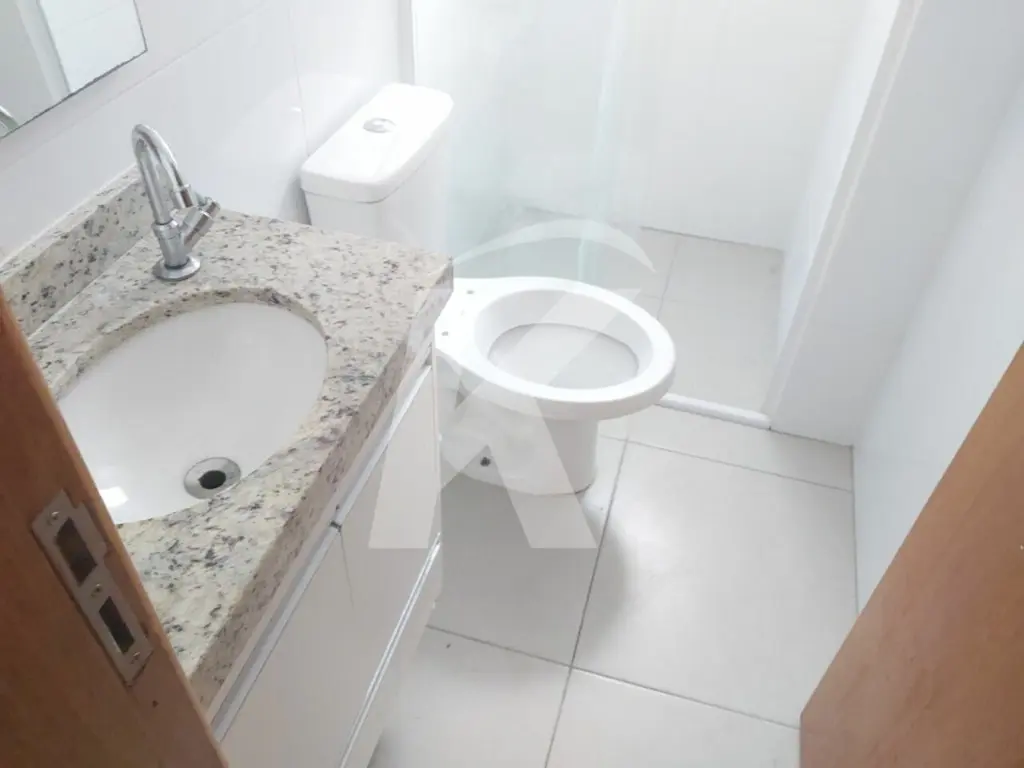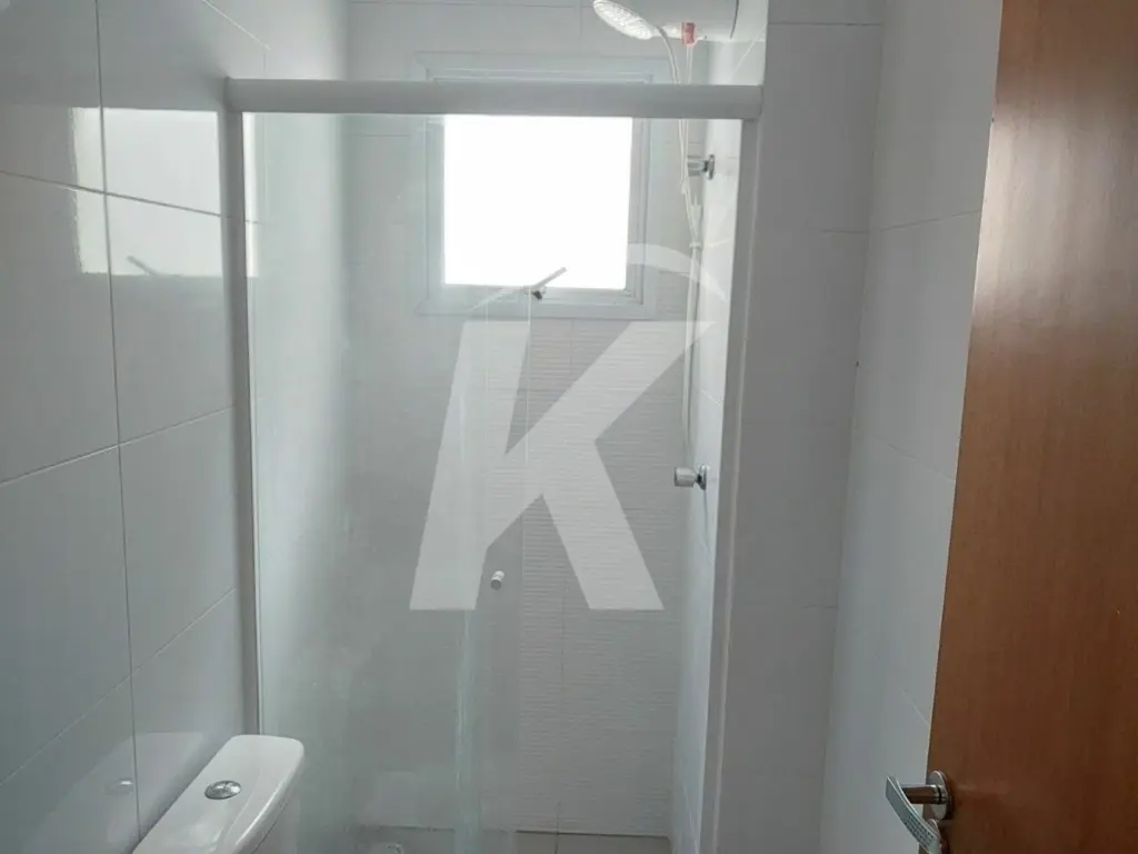 Apartamento em condomínio fechado medindo 52 m² distribuídos em 2 quartos, sala, cozinha e lavanderia com armários, banheiro com chuveiro e box.