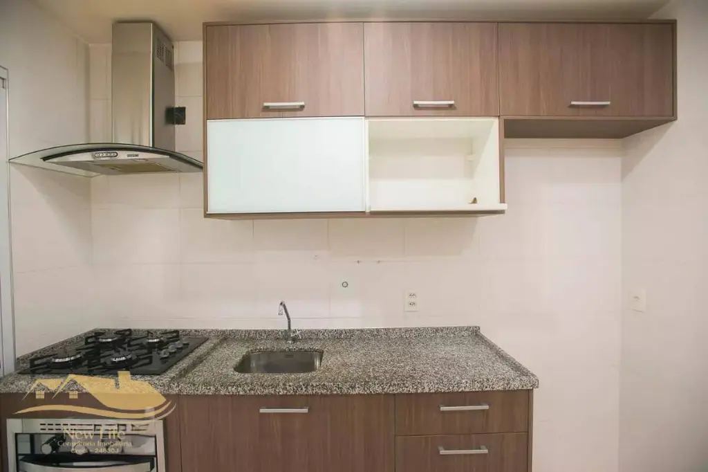 cozinha com armários, coocktop e forno eletrico