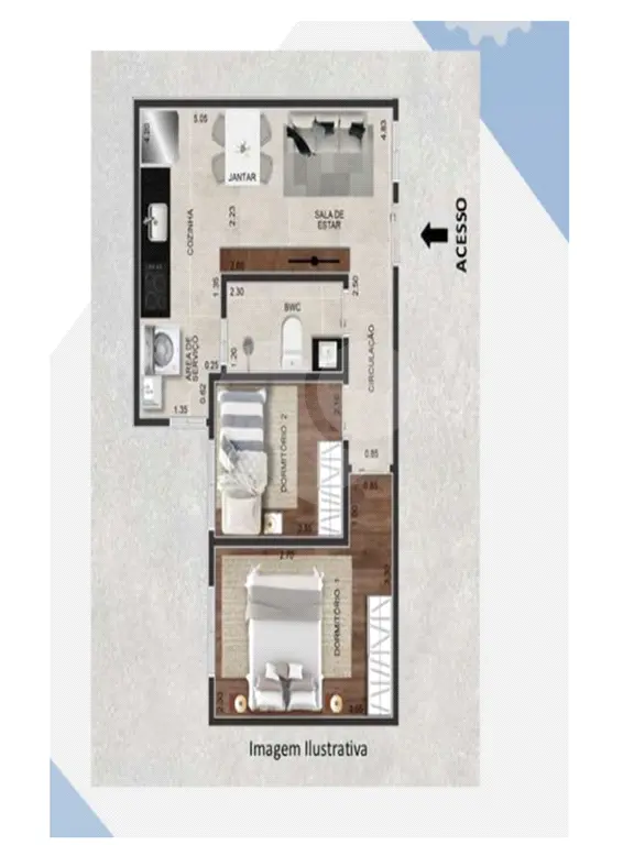 Apartamento, 2 Dorms para Alugar, 44 m² por R$ 2.000,00