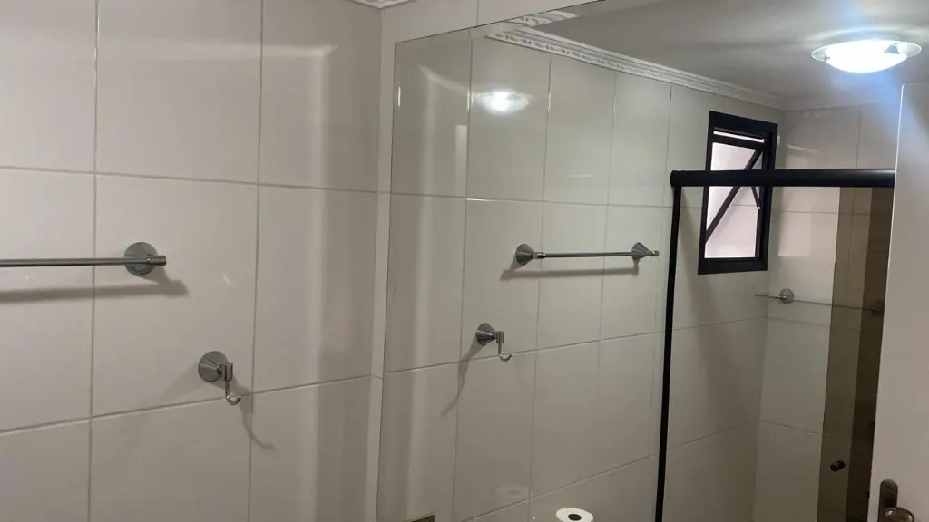 Banheiros com box de vidro e armários