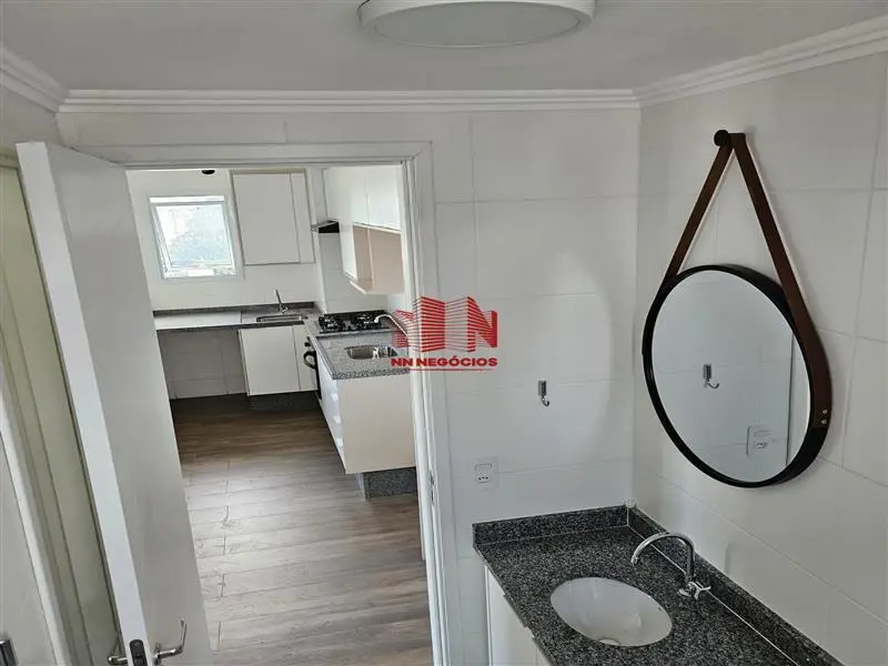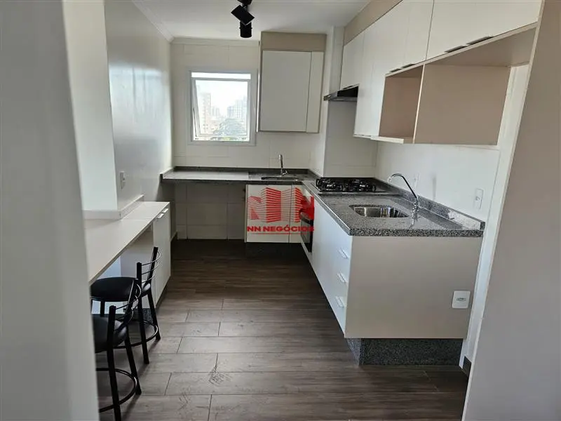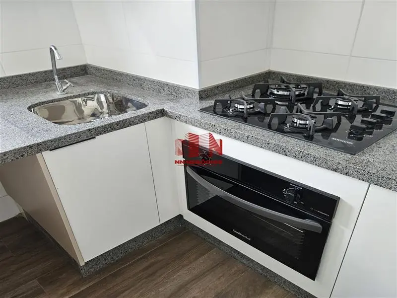 O apartamento é equipado com cooktop, forno elétrico e exaustor.