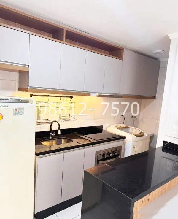 Mobiliado, cozinha planejada, fogão por indução, lavanderia com máquina de lavar, sala com sofá e painel, domitório com armarios, perto de tudo, transporte público na porta.