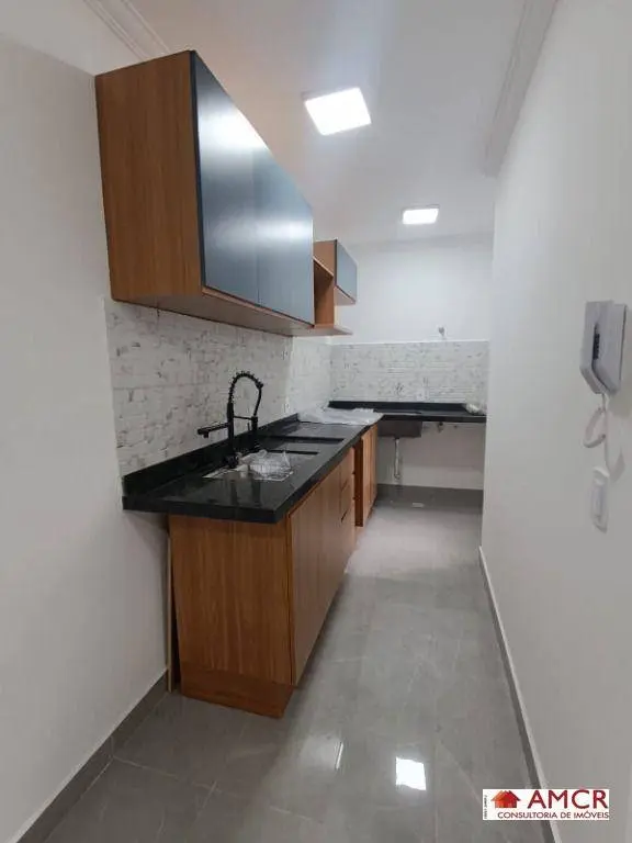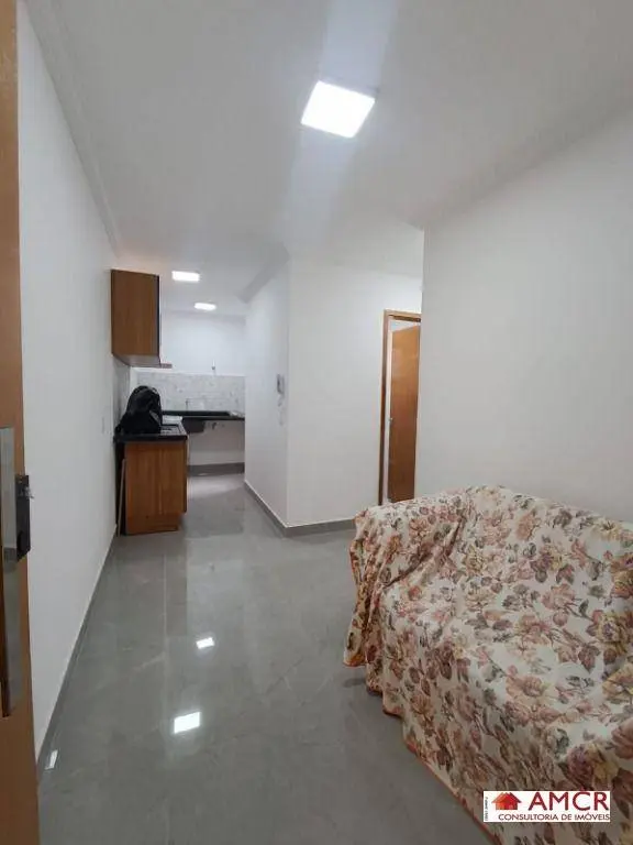 Apartamento com fino acabamento, com 2 dormitórios sendo um deles com varanda, sala com sofá, cozinha moderna com armários e cooktop, área de serviço, WC, sem vaga de garagem.