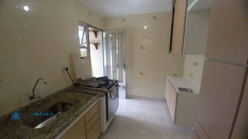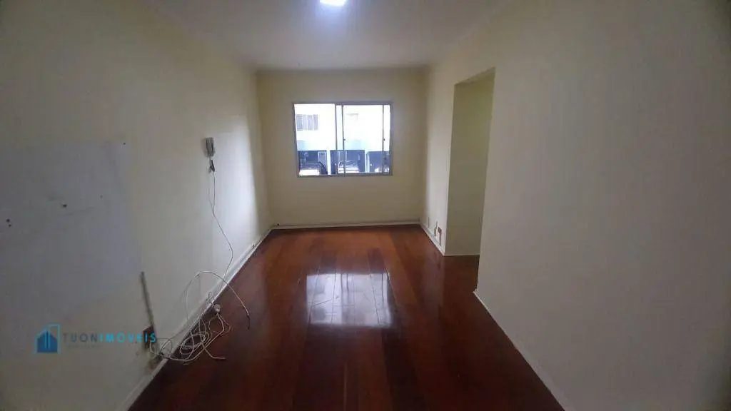 Apartamento em andar térreo com 53m² de área útil e 23m² de área comum incluindo uma garagem coberta. São 2 dormitórios, ambos com armários, ampla sala bem arejada, cozinha equipada com pia de granito, armários de parede e fogão em perfeito estado de conservação, área de serviço, 2 banheiros, um utilizado como dispensa. Piso de madeira na sala e dormitórios e piso frio nas demais dependências.