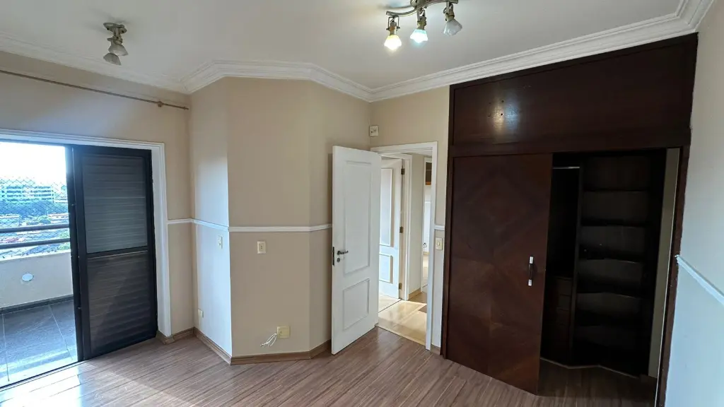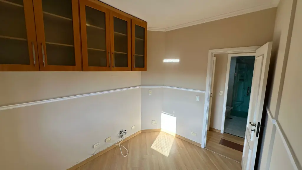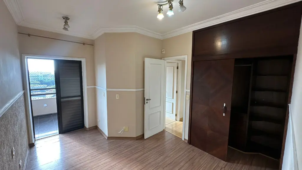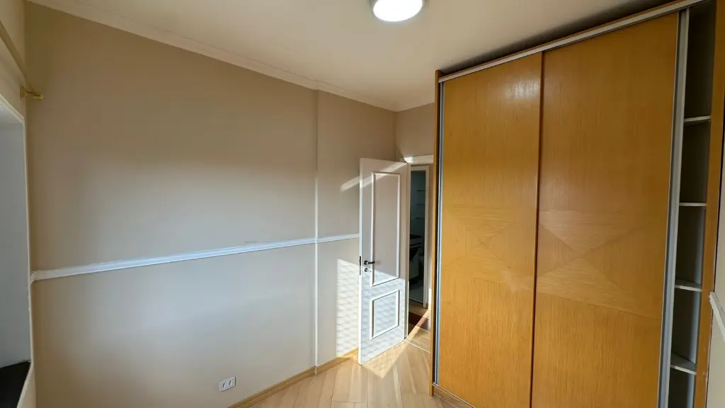 03 Dormitórios, sendo um deles uma suíte com closet e armários planejados. (Confira o charme do quarto e o armário escuro na foto!)