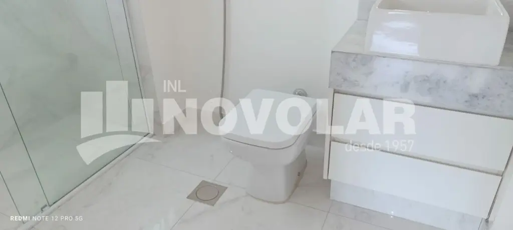 Banheiros com porcelanato de alto padrão, iluminação em LED e acabamento impecável