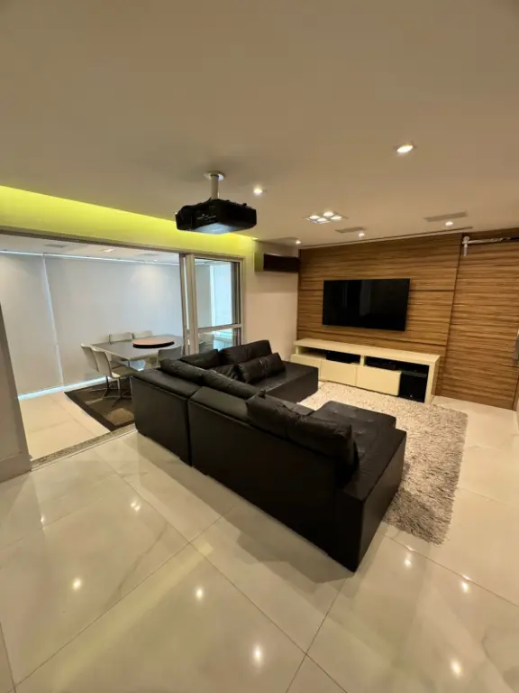 Unidade 110 m², com 3 dormitórios, sendo 1 suíte, espaço home office, sala com varanda gourmet, cozinha planejada, sala com sistema de som JBL, projetor 3D Panasonic com telão automatizado, unidade também conta com 2 vagas de garagem.