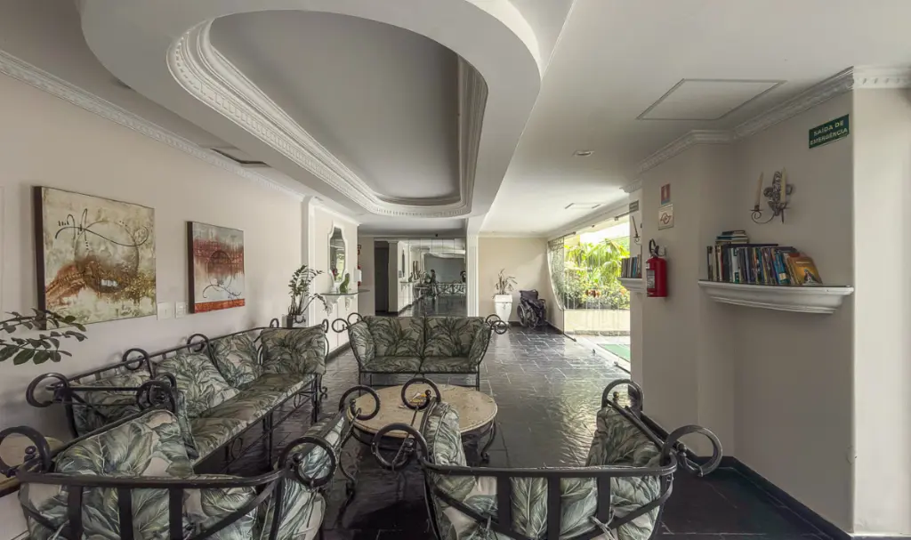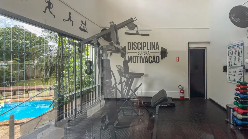 O condomínio é completo e oferece portaria 24 horas, garantindo segurança e tranquilidade. Para o lazer, dispõe de piscina adulto e infantil, salão de festas, sala de ginástica e diversos espaços de convivência, incluindo um agradável jardim próximo à piscina, perfeito para relaxar ao ar livre. O prédio conta ainda com elevador, trazendo mais conforto e acessibilidade.