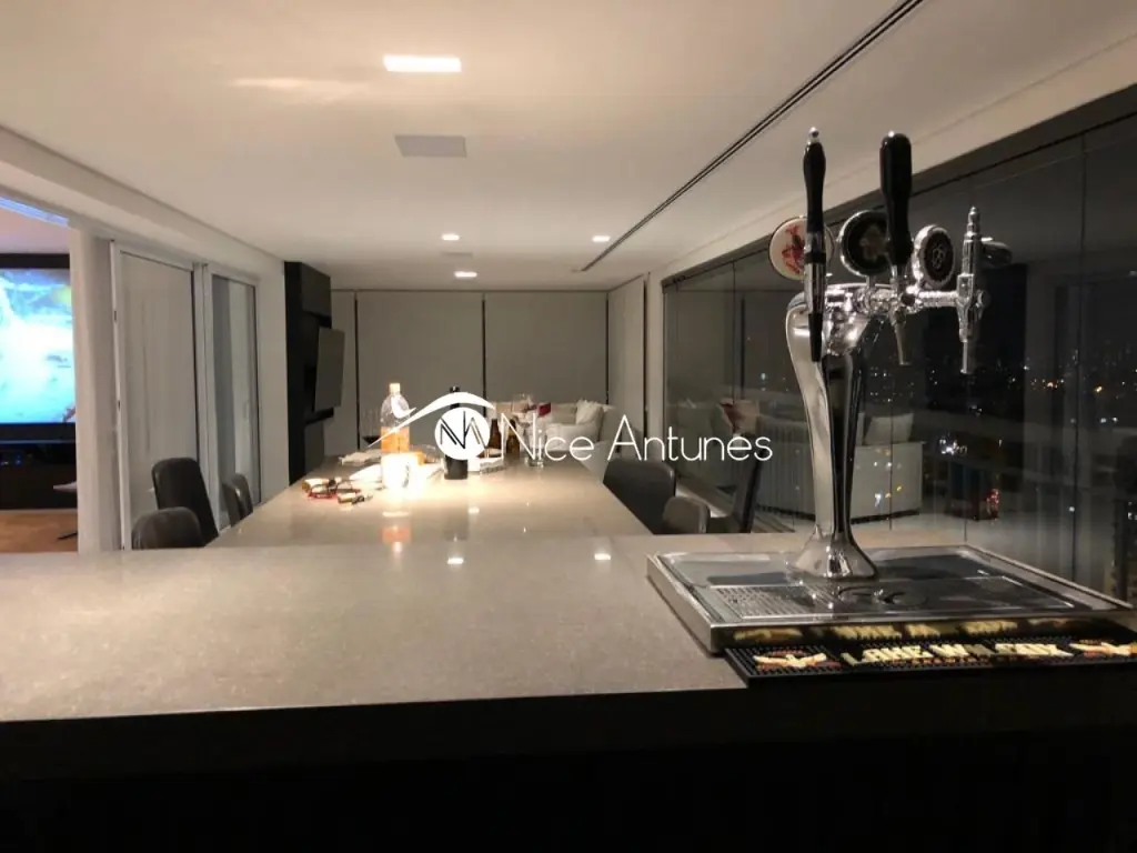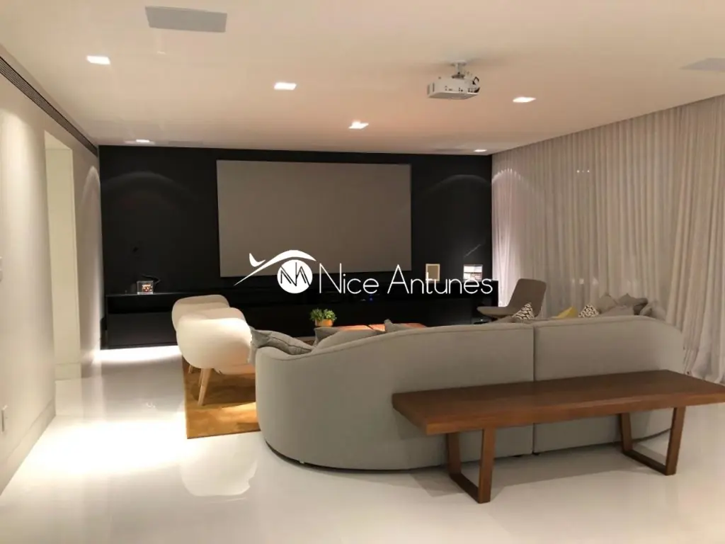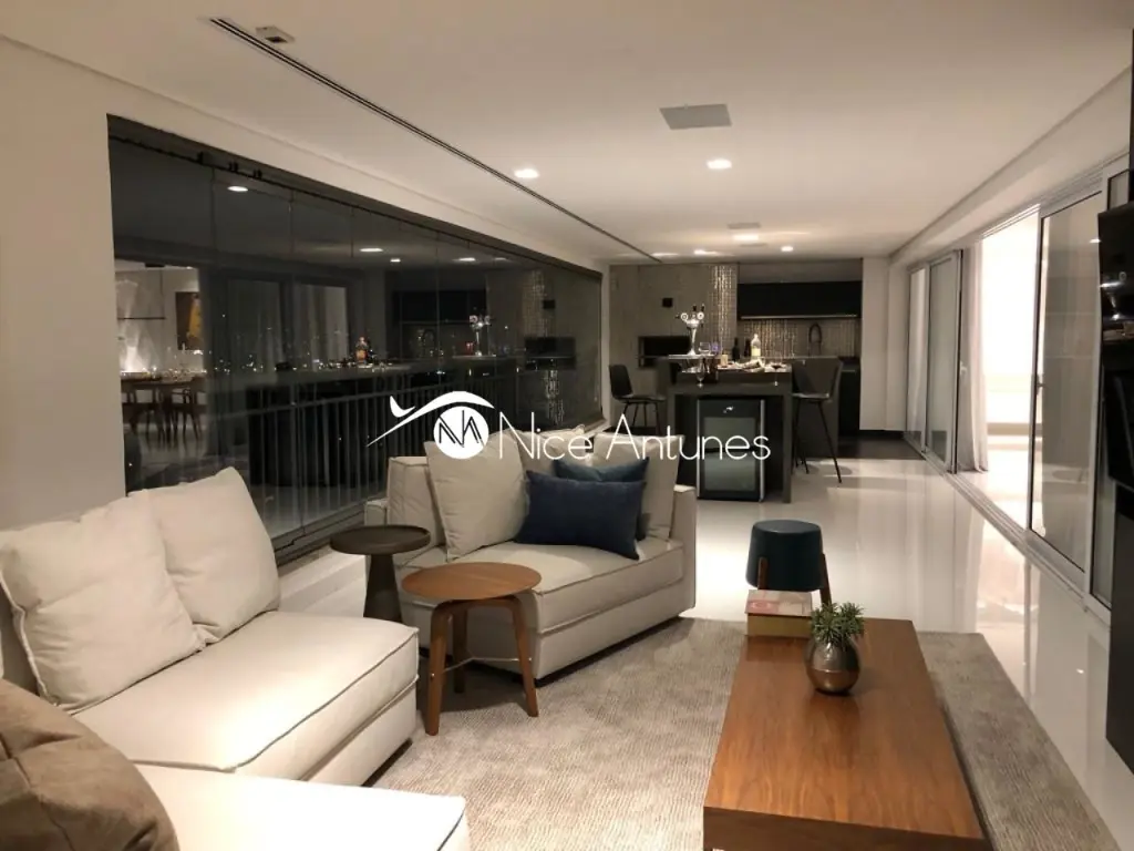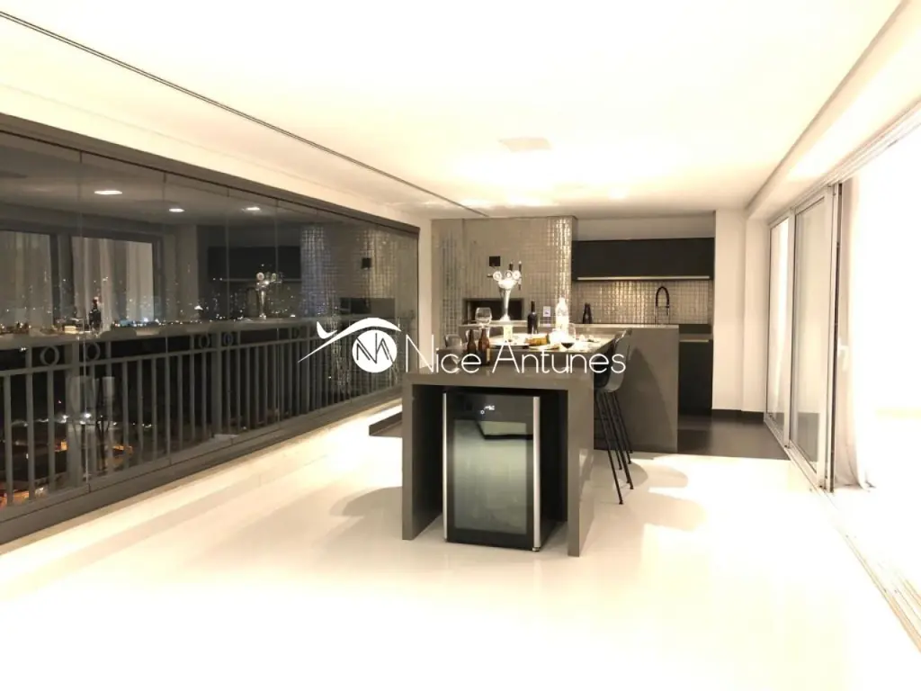 Varanda Gourmet muito ampla com lareira, dormitórios repletos de armários, closet, piso de madeira Indusparquet, porcelanto de 1,00 X 1,00, som ambiente, iluminação de led em todos os ambientes, ar condicionado, dependência completa de empregada.