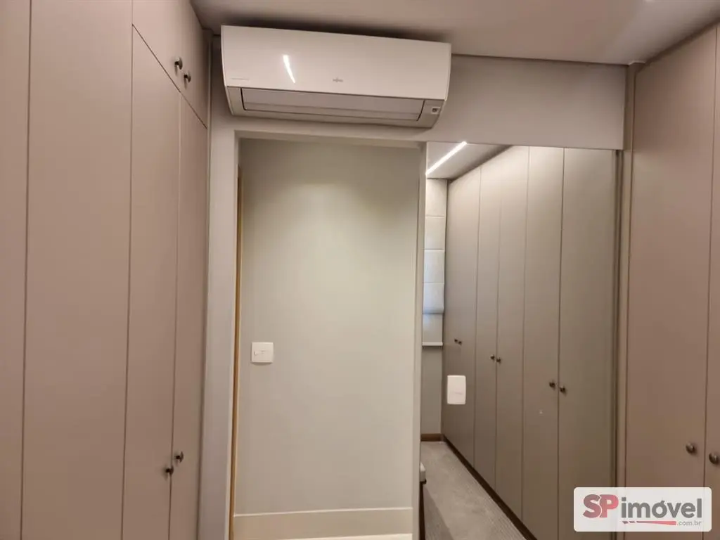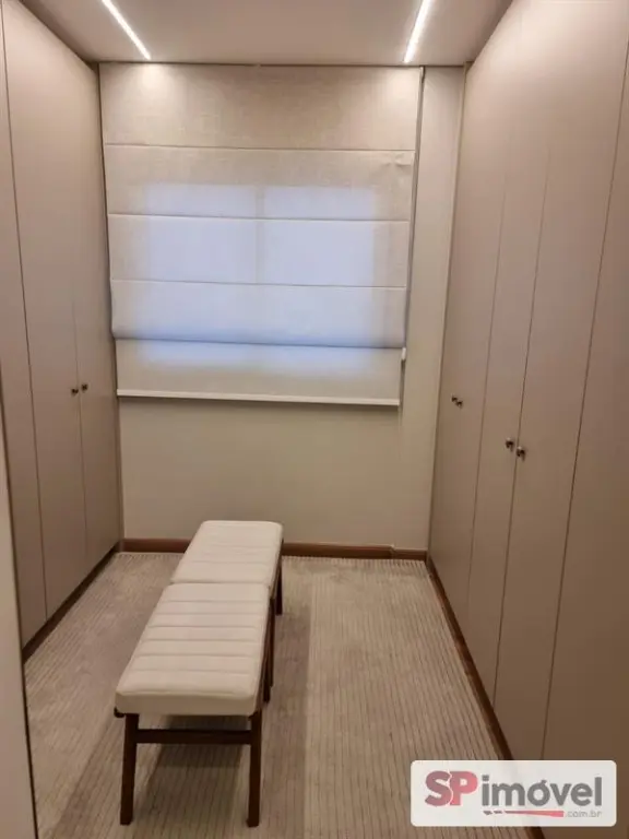 Closet : Ar condicionado quente e frio split, armários embutidos sob medida, tapete, bancos central, cortinas sob medida, iluminação de led.