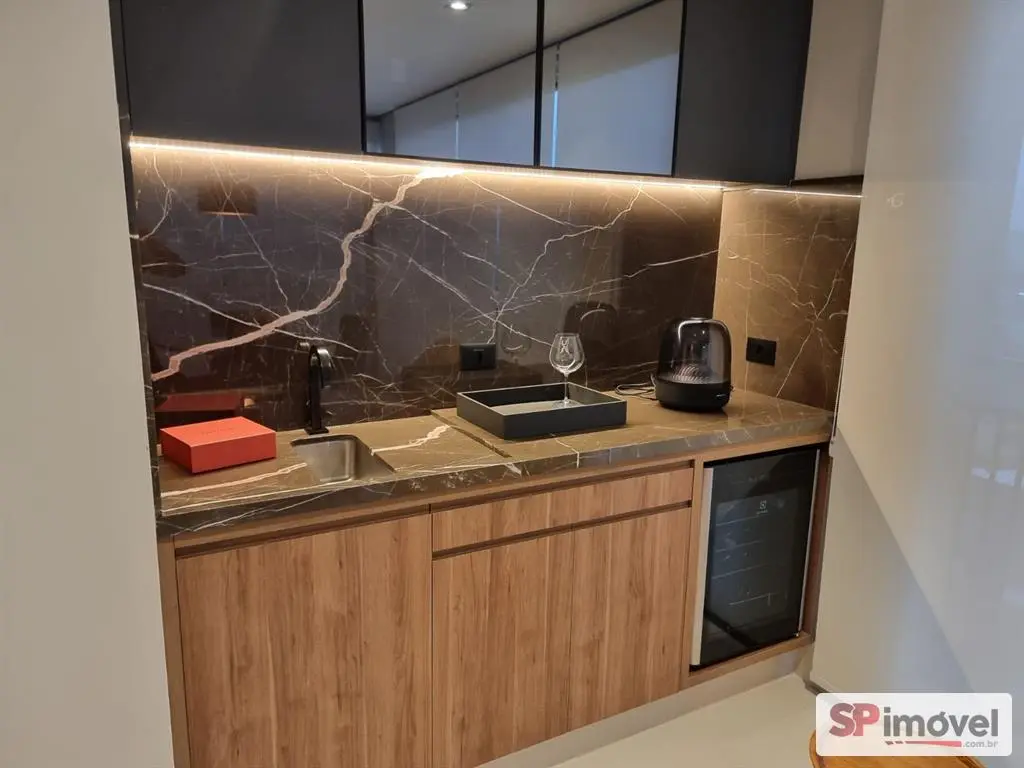 Cozinha : Armários embutidos sob medida, geladeira porta dupla, máquina de lavar louças embutida, forno embutido, cooktop, coifa com exaustor, balção com pedra e armários, forno microondas embutido, iluminação de led, torneira deca com filtro embutido de água quente e fria.