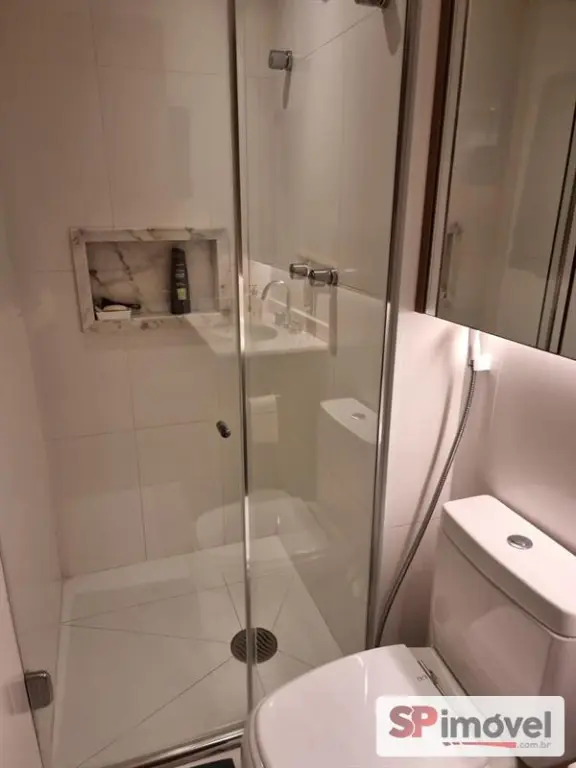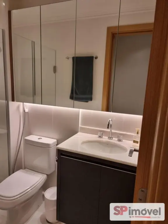Banheiro social: Armários e gabinetes sob medida, box de vidro, iluminação de led, torneira deca de água quente e fria, chuveiro á gás.