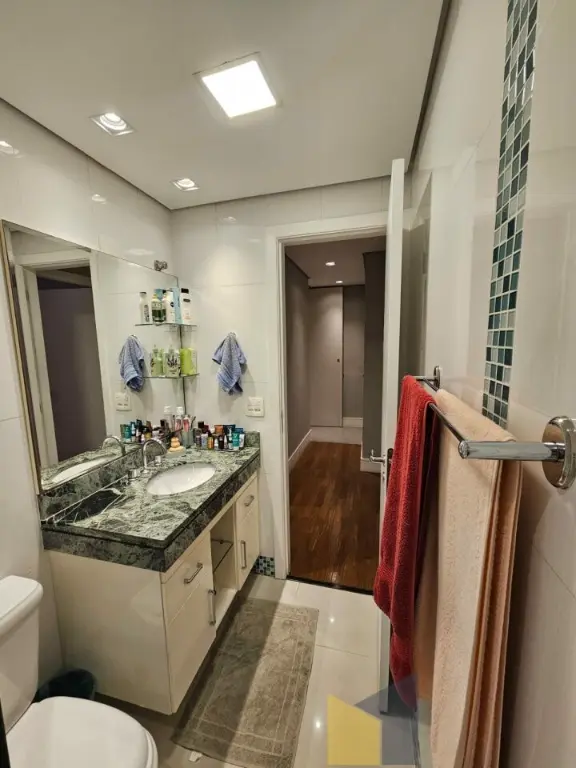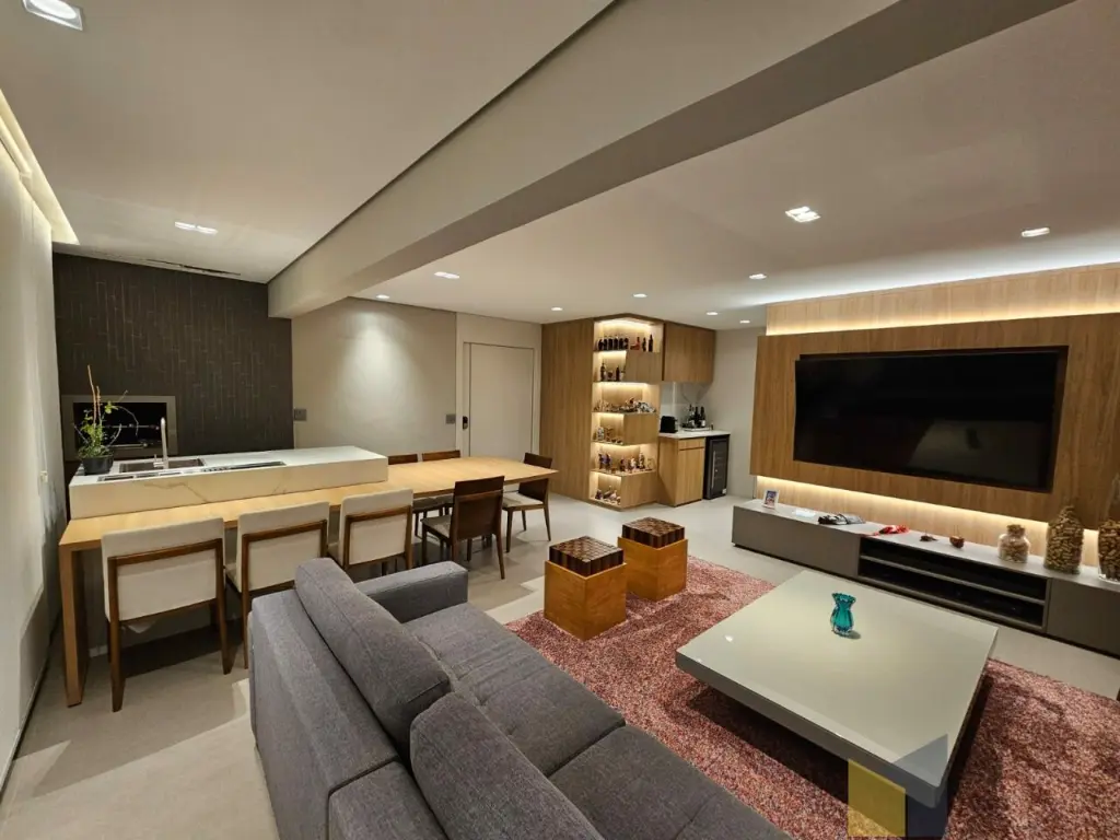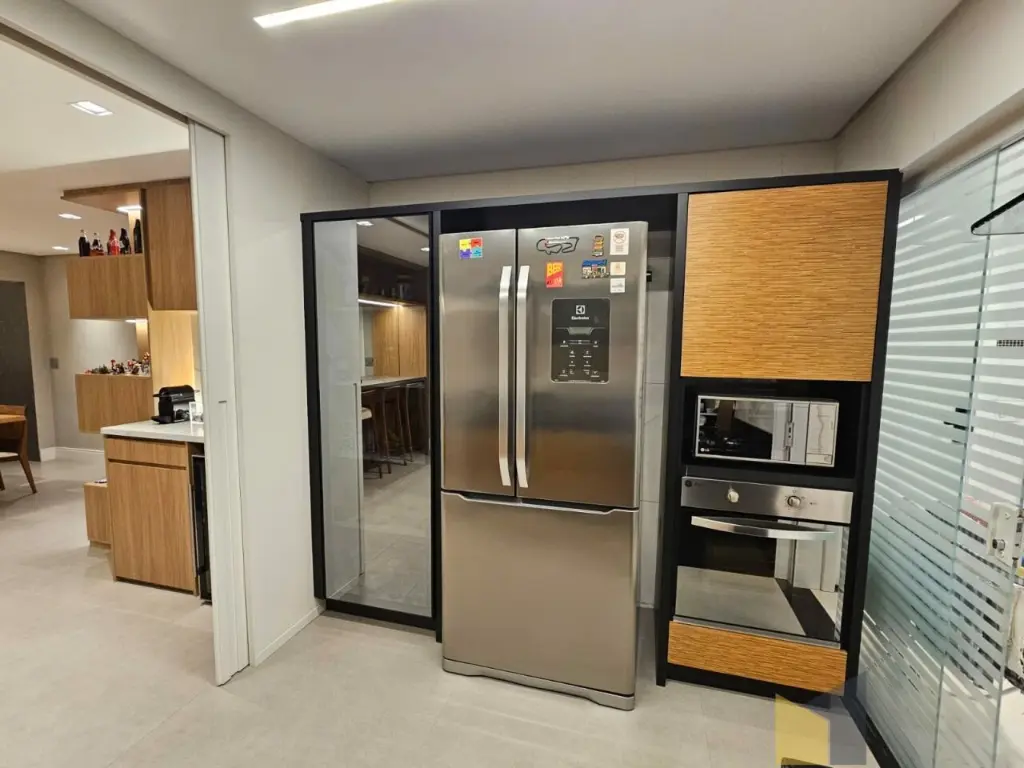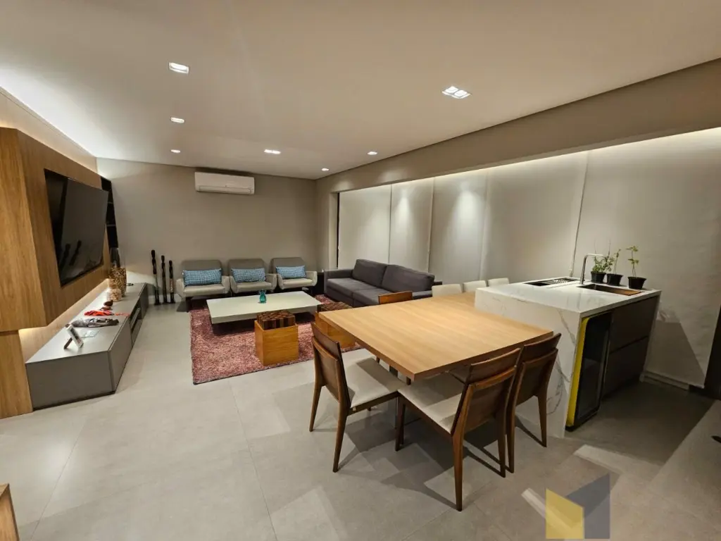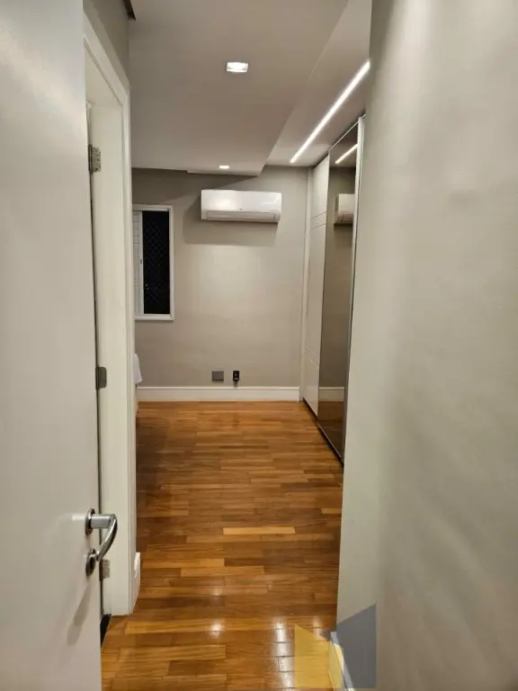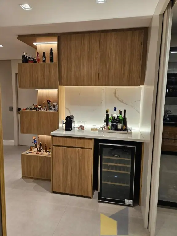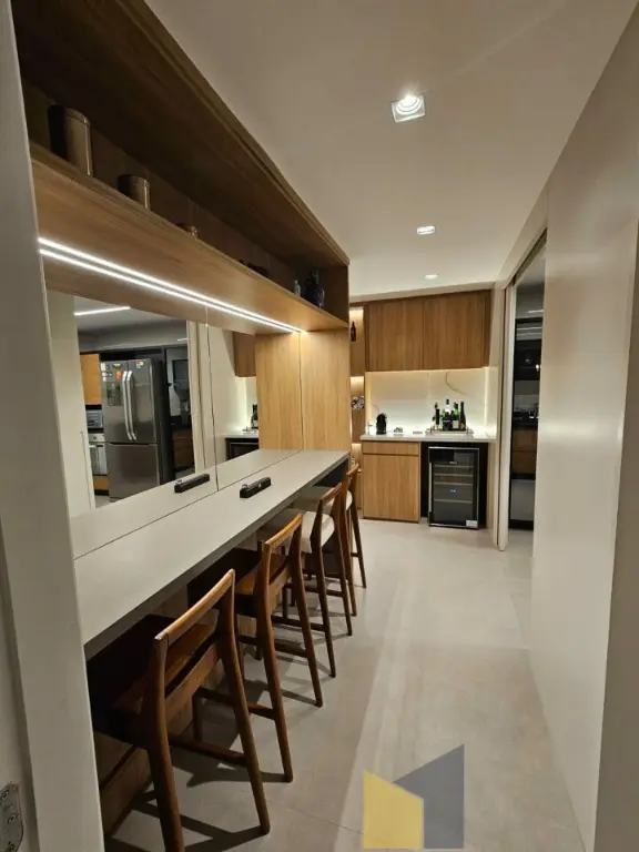 1 suite + 2 dormitorios com armarios embutidos, piso de madeira, banheiro social, sala integrada com a sacada (piso em porcelanato) lavabo, ar condicionado na suite e sala, cozinha planejada tbm integrada a sala, area de Servico ampla com banheiro