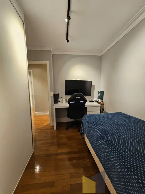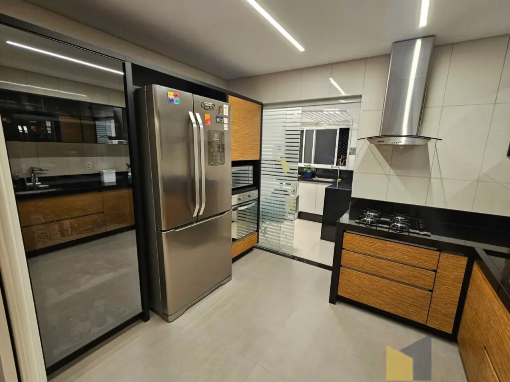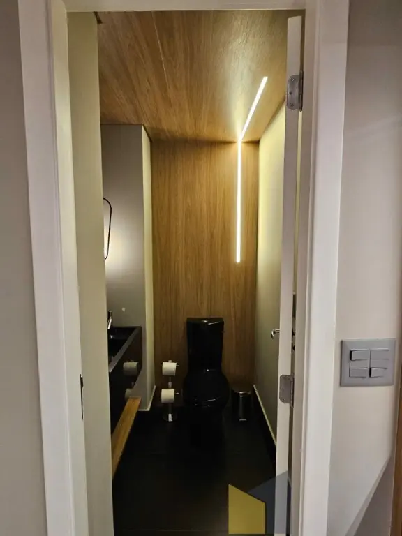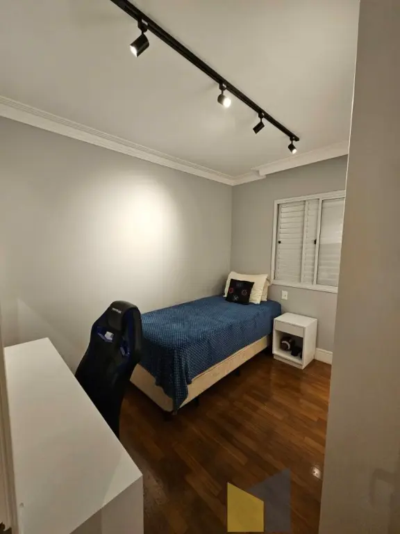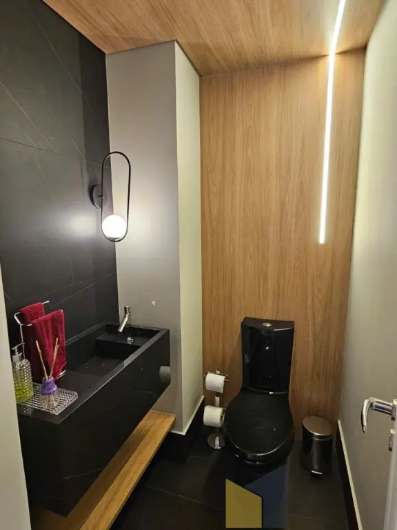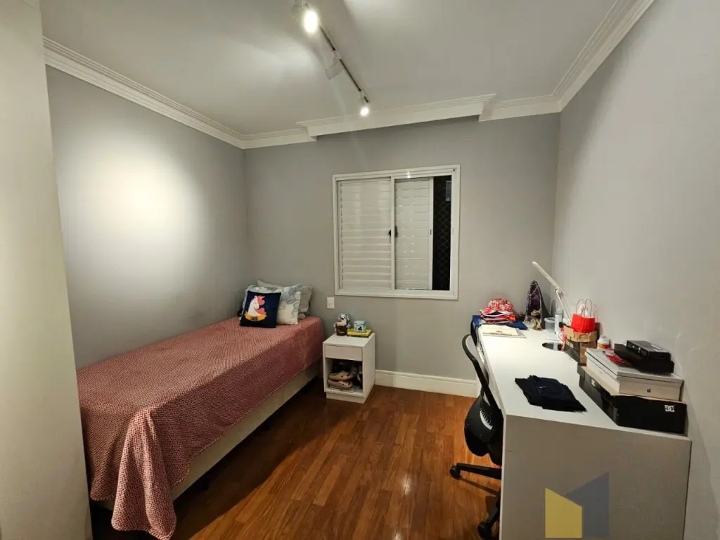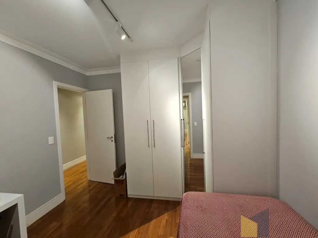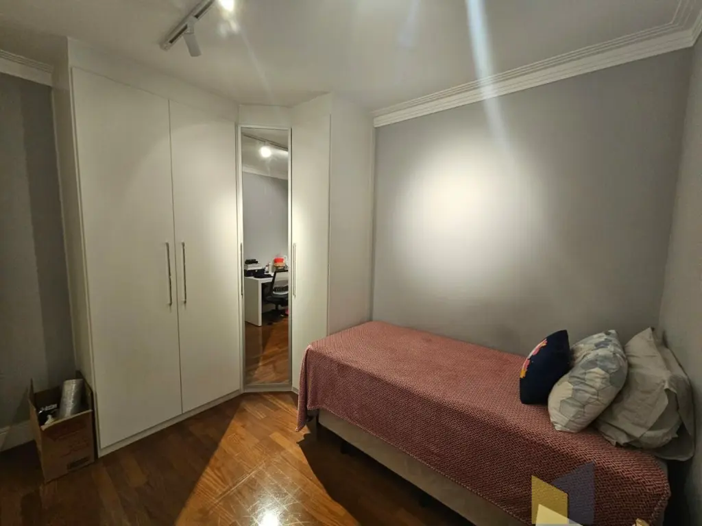 1 suite + 2 dormitorios com armarios embutidos, piso de madeira, banheiro social, sala integrada com a sacada (piso em porcelanato) lavabo, ar condicionado na suite e sala, cozinha planejada tbm integrada a sala, area de Servico ampla com banheiro