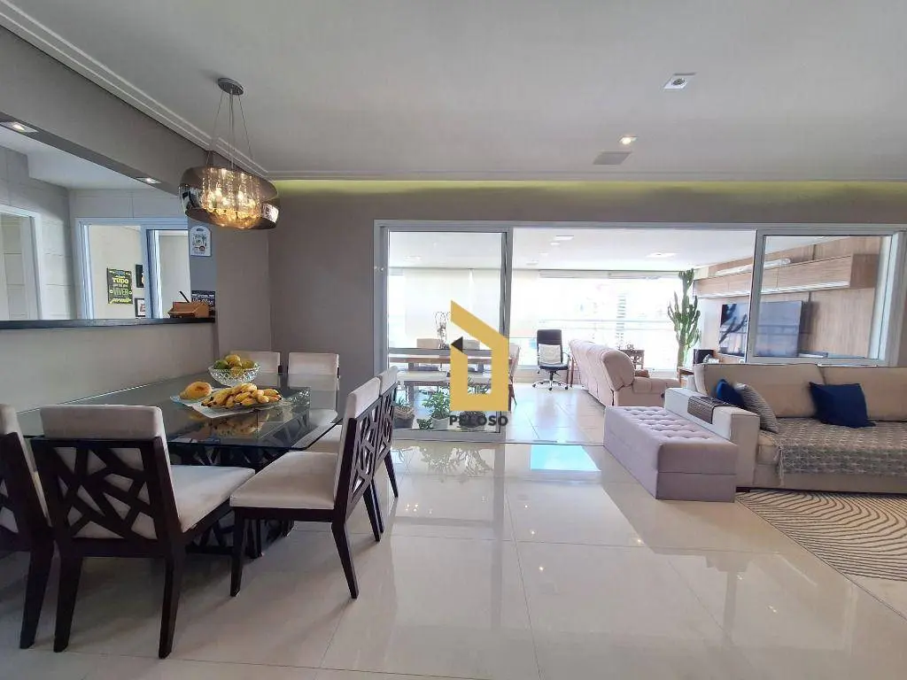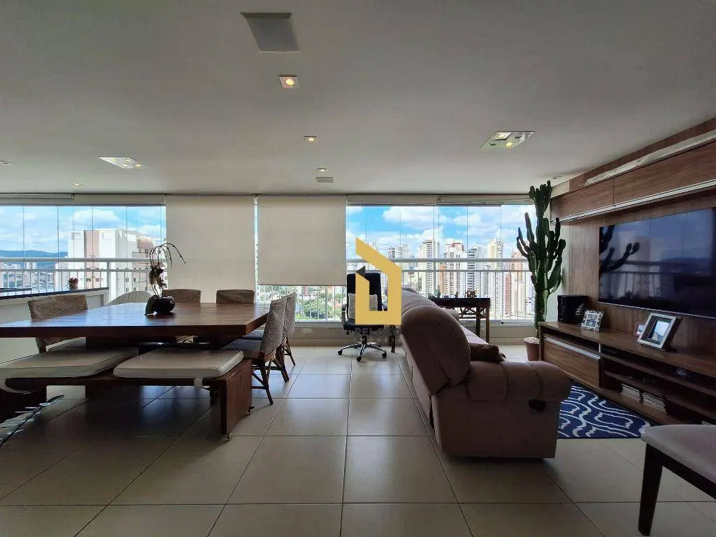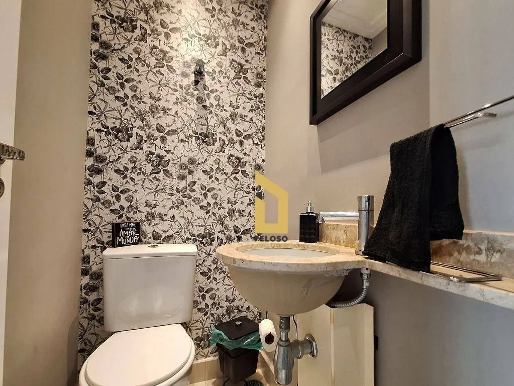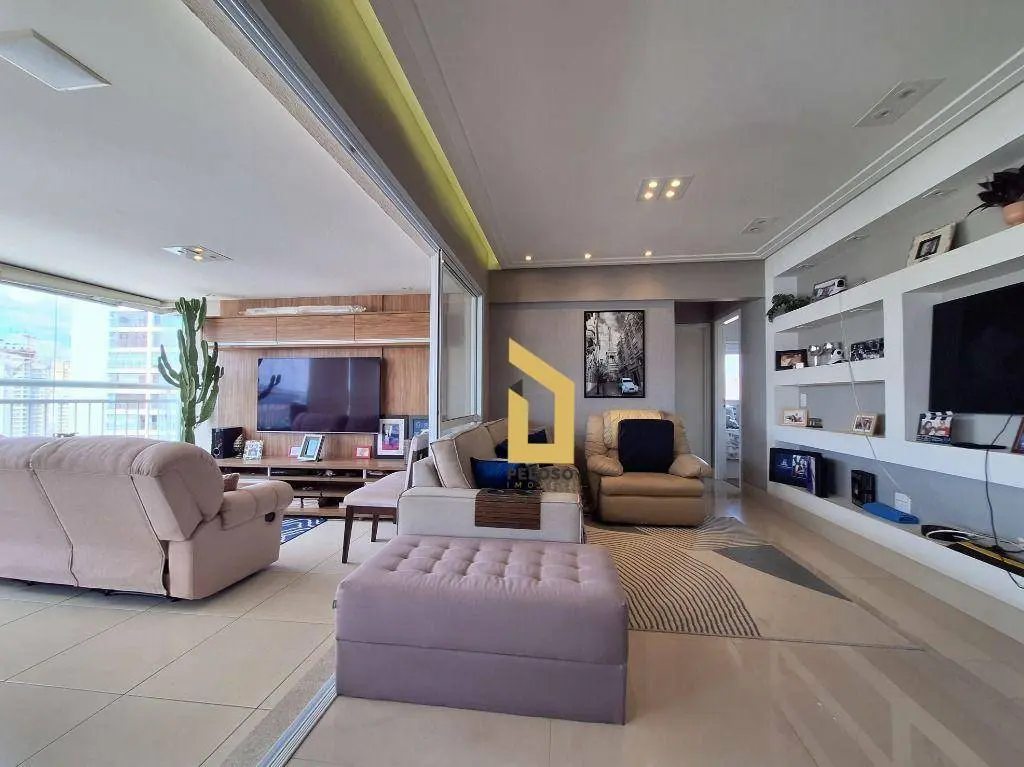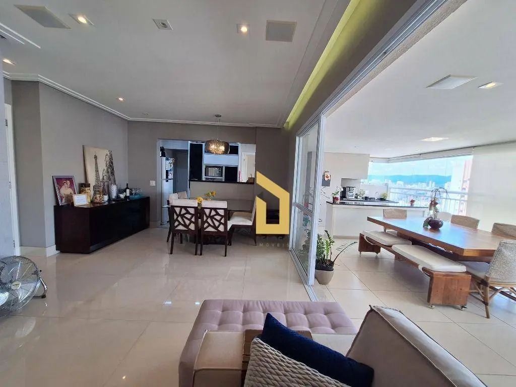 3 suítes, sala para 3 ambientes integrada à varanda gourmet, lavabo, cozinha americana 4 banheiros e área de serviço.