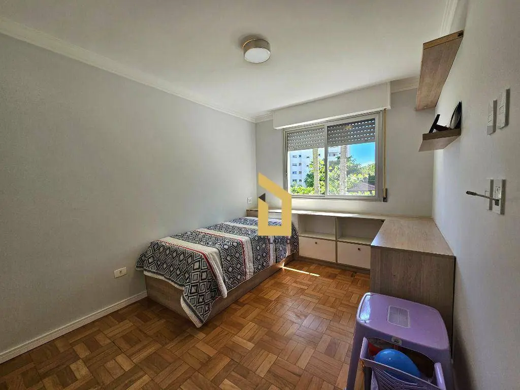O prédio, datado dos anos 80, é muito bem cuidado e conta com piscina, quadra poliesportiva, churrasqueira, salão de festas e academia.