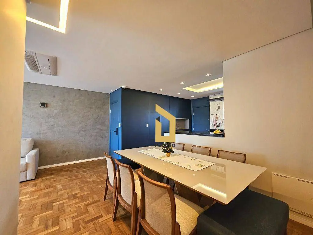 3 dormitórios sendo 1 suíte, sala para 2 ambientes, cozinha em conceito aberto integrada com a sala, lavabo, lavanderia, despensa, quarto e banheiro de serviço. Cômodos muito bem divididos e confortáveis. Ar condicionado na suíte, 1 quarto e sala.