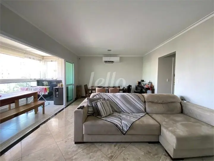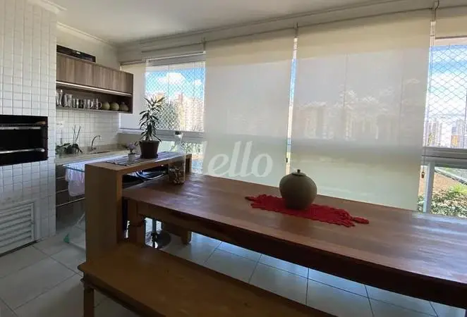 São 3 suítes com ar-condicionado e armários planejados, além de uma sala climatizada para dois ambientes e um lavabo. A cozinha e área de serviço contam com armários planejados.