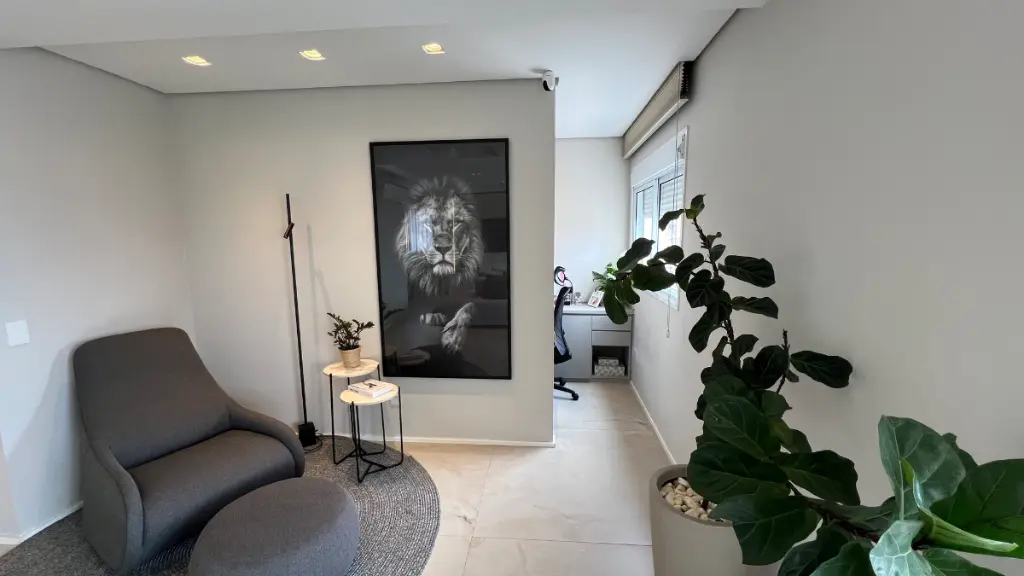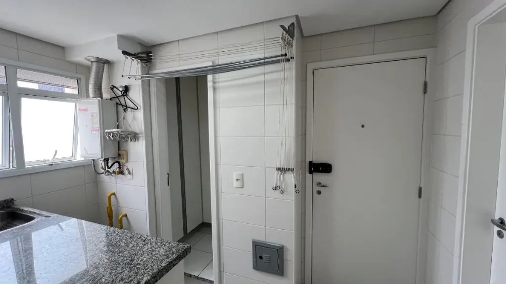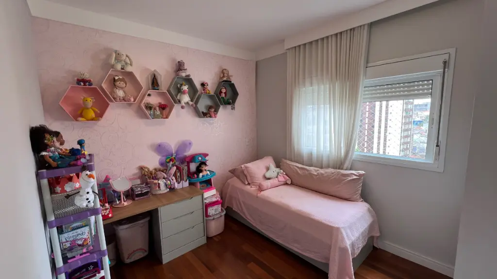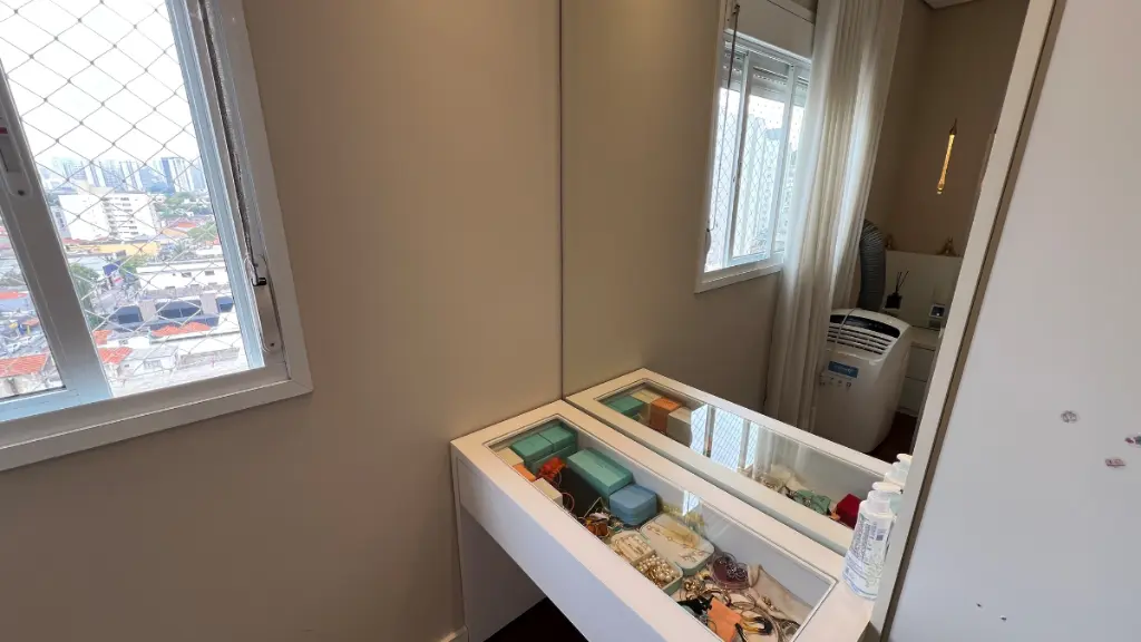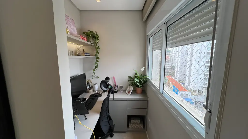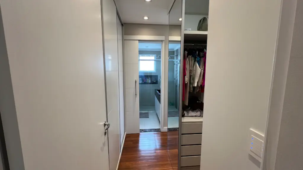 São 3 suítes, com a closet na master, e mais armários no corredor. O apartamento possui ainda um espaço separado para home office na sala e 3 vagas fixas de garagem.