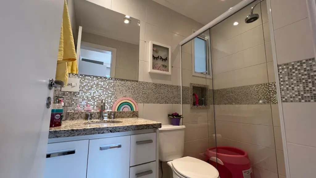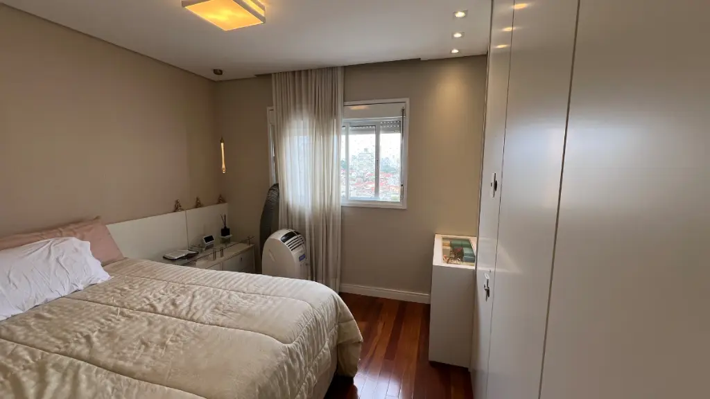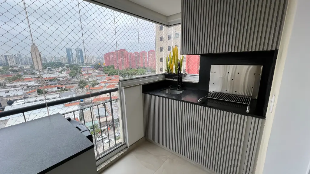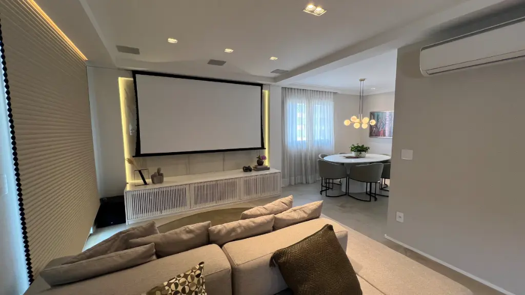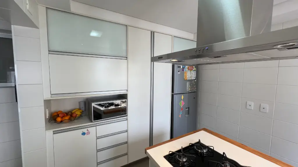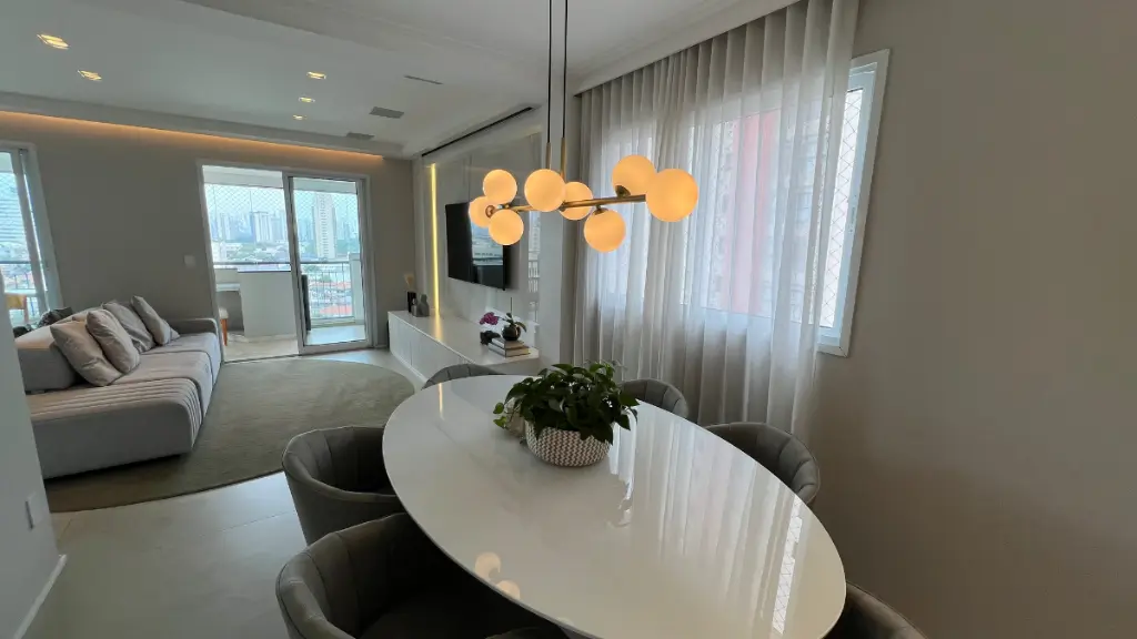 Sala ampla para 3 ambientes, varanda gourmet fechada com cortina de vidro, lavabo, ar condicionado em todos os cômodos, wc de serviço, despensa e lavanderia.