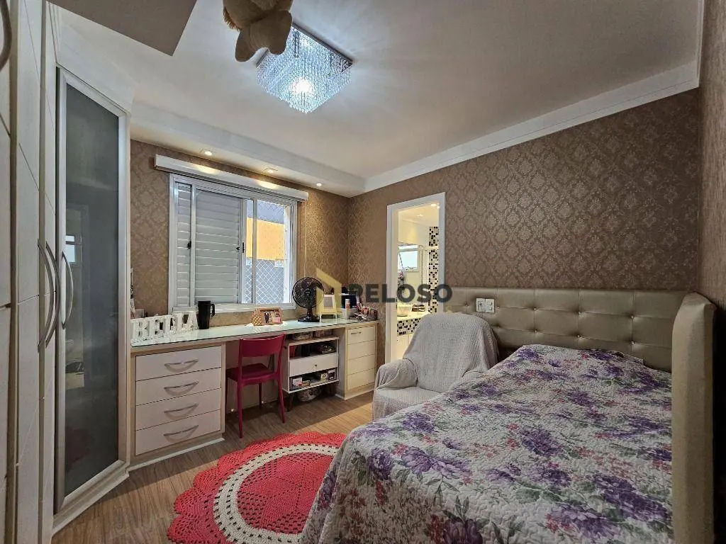 Condomínio conta com piscina, salão de festas, churrasqueira, academia, brinquedoteca, playground, quadra poliesportiva, portaria 24 horas e serviço de zeladoria.