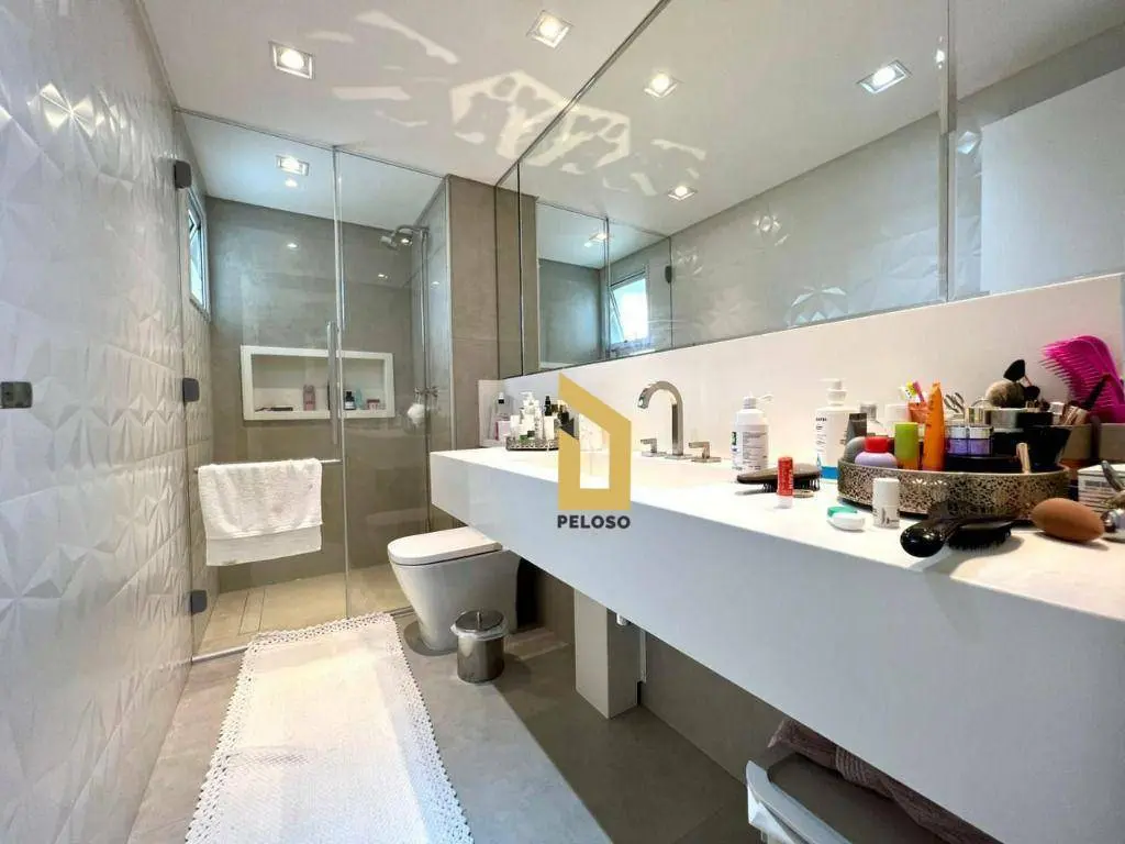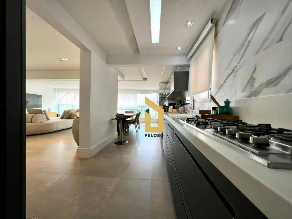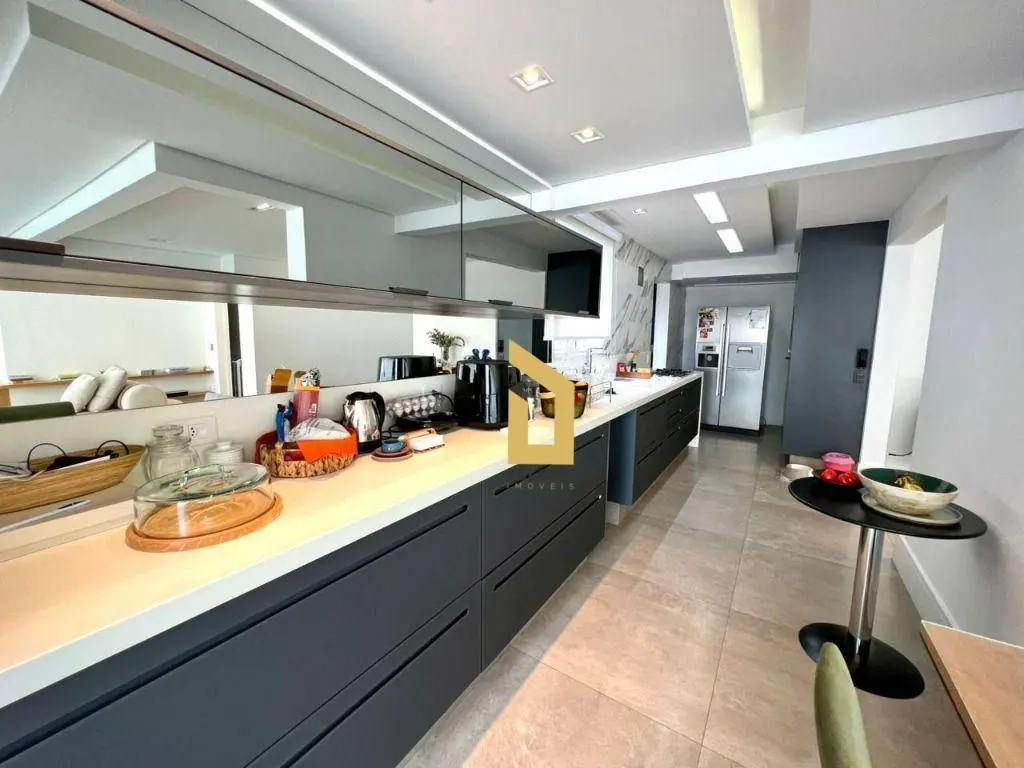 3 suítes sendo 1 master com closet e sacada, ampla sala com iluminação natural em ambiente aberto com a varanda gourmet com envidraçamento e churrasqueira, proporcionando mais sensação de espaço e conforto, lavabo, 4 banheiros, cozinha com móveis planejados em ótimo estado e área de serviço com lavanderia.