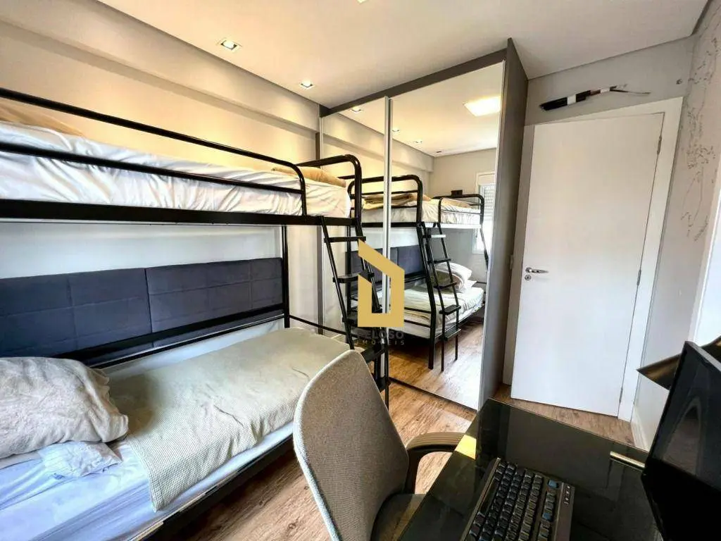 Condomínio oferece lazer completo, com piscina adulto e infantil com deck molhado e solarium, sauna, academia, quadra poliesportiva, salão de festas com área gourmet, churrasqueira e lareira, playground, brinquedoteca, salão de jogos, espaço pet e área verde com redário. É um condomínio clube completo, com portaria 24 horas, elevadores sociais e de serviço, gás encanado e rampas de acesso.