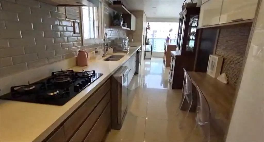 A cozinha planejada, elegante e funcional, possui acesso direto à varanda gourmet, proporcionando integração e praticidade no dia a dia. O imóvel conta ainda com 2 vagas de garagem.