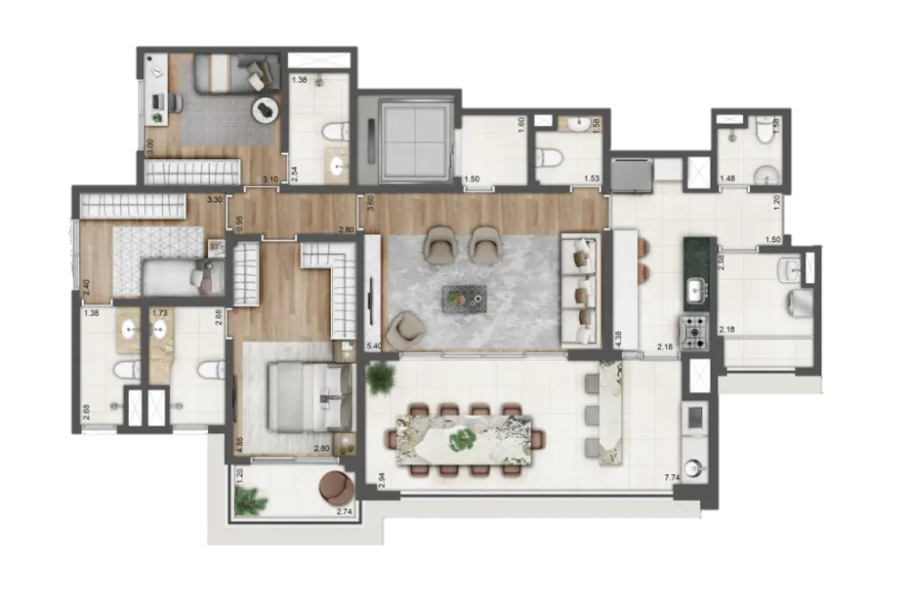 Apartamento alto padrão, área privativa de 132m², esta planta tipo foi desenhada para oferecer o máximo de conforto e sofisticação.