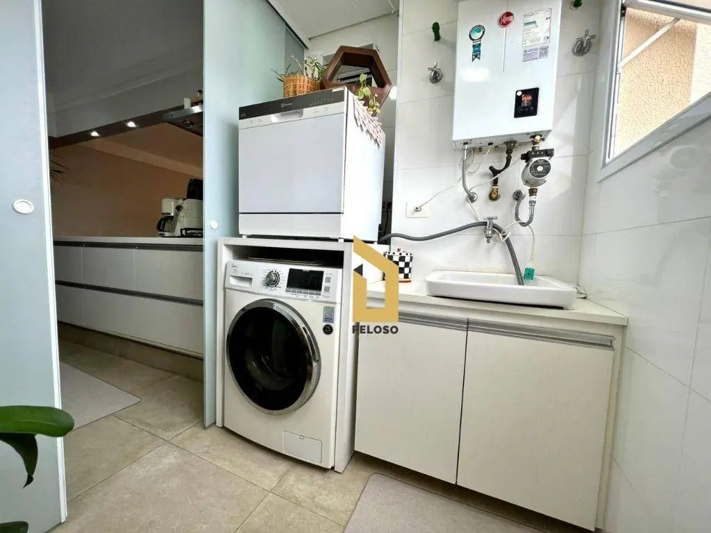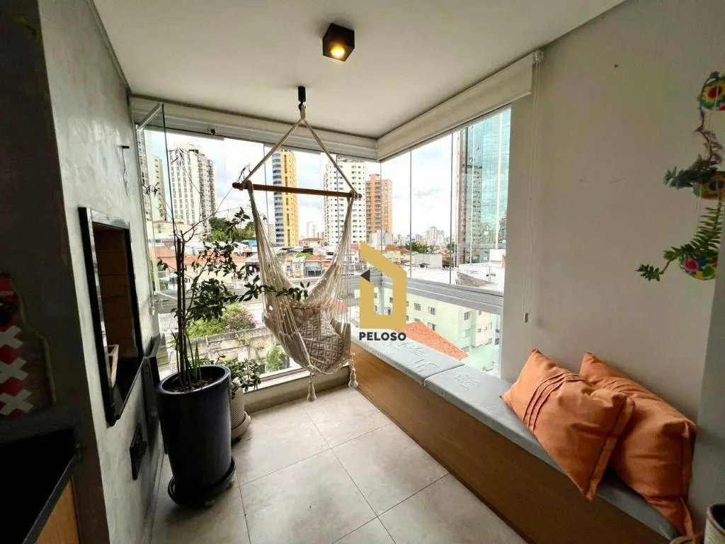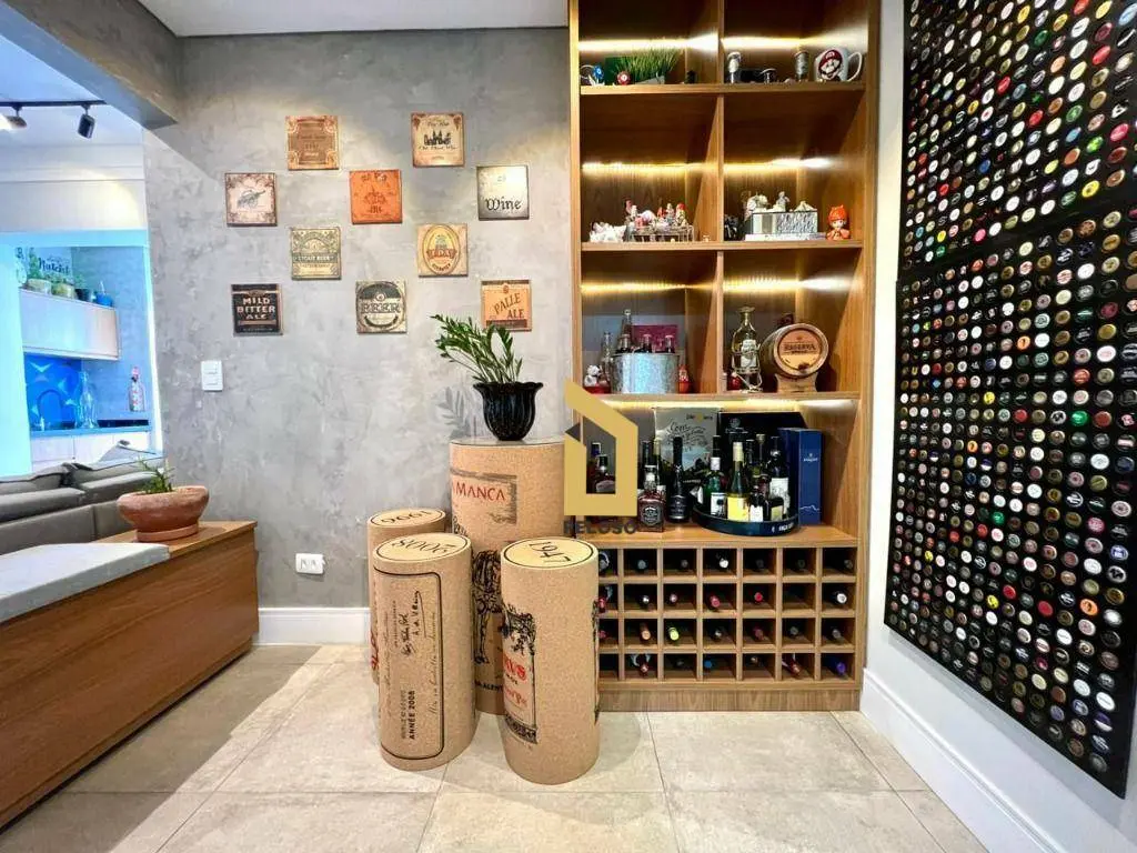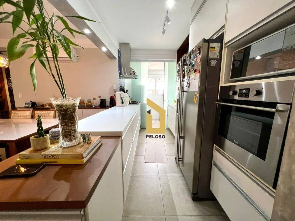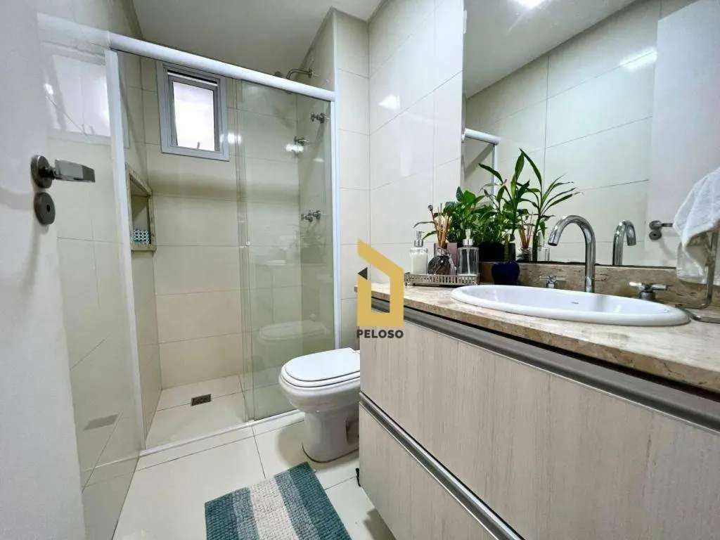 São 88m² com 2 dormitórios sendo uma suíte com closet, banheiro social, sala com dois ambientes com ar condicionado, área gourmet com churrasqueira e fechamento de sacada com envidraçamento, cozinha planejada, lavanderia, despensa e lavabo.