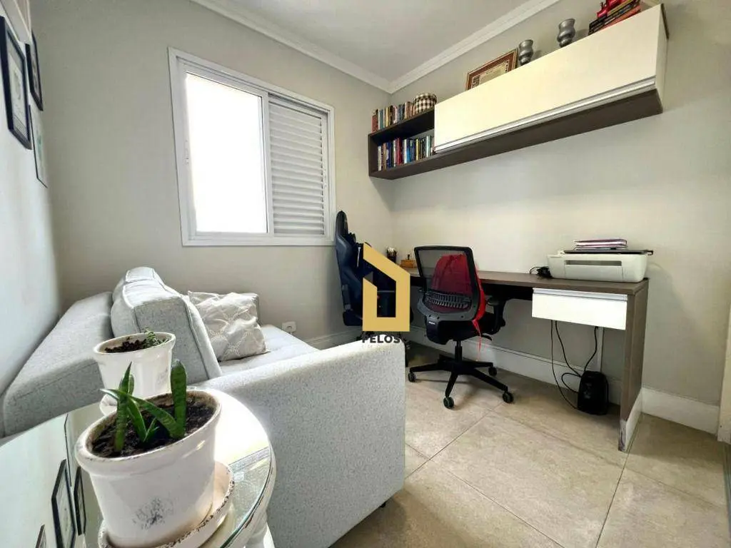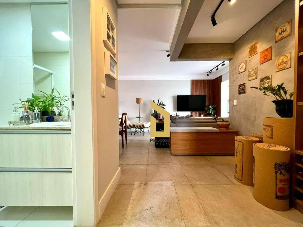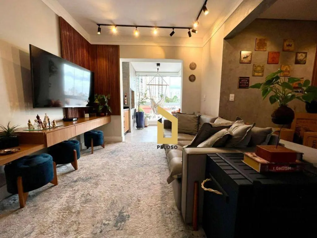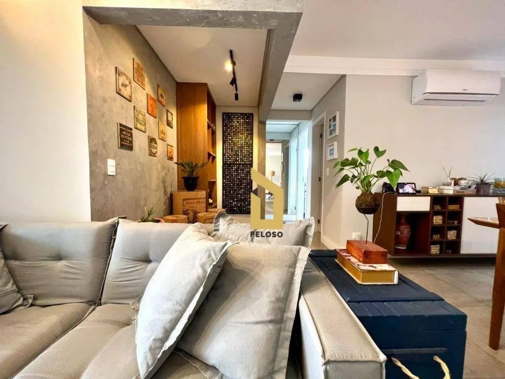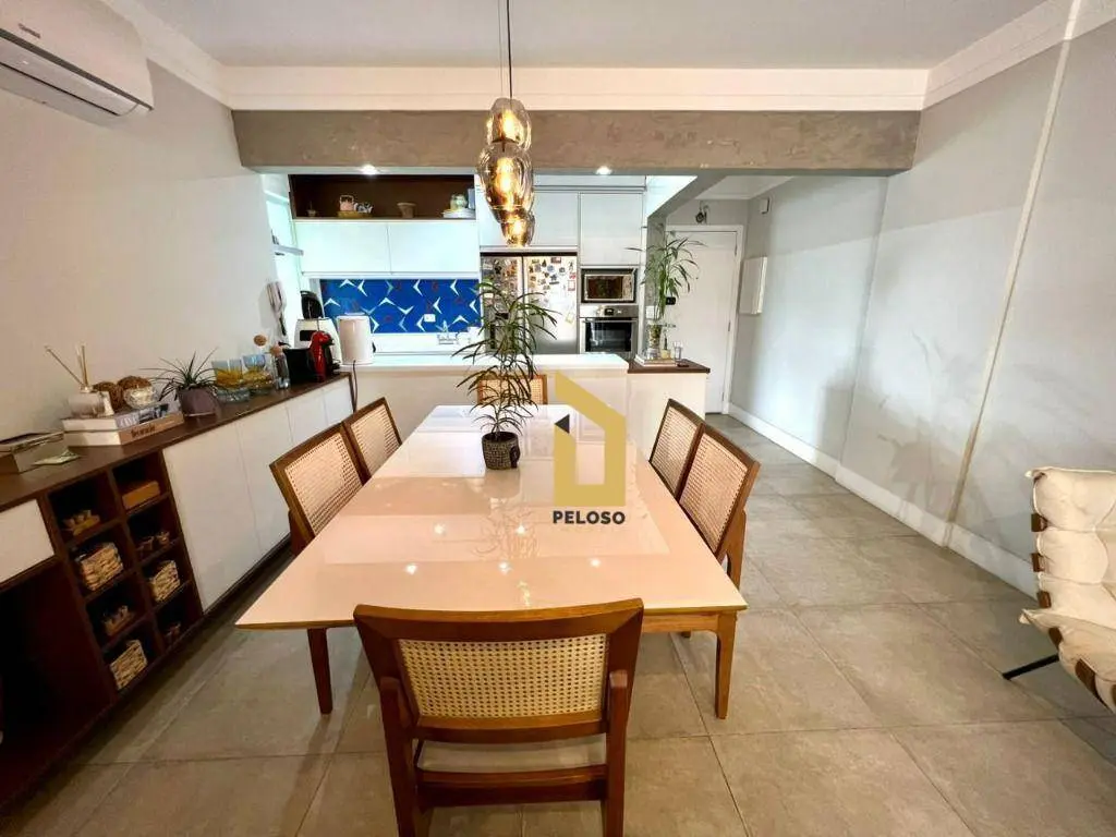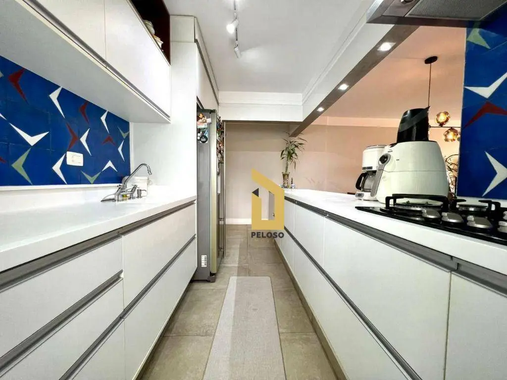 São 88m² com 2 dormitórios sendo uma suíte com closet, banheiro social, sala com dois ambientes com ar condicionado, área gourmet com churrasqueira e fechamento de sacada com envidraçamento, cozinha planejada, lavanderia, despensa e lavabo.