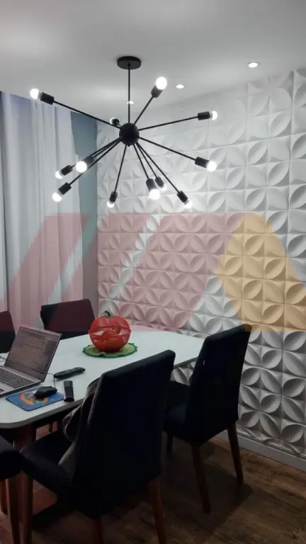 Sala para 2 ambientes, parede com um lindo acabamento em relevo.