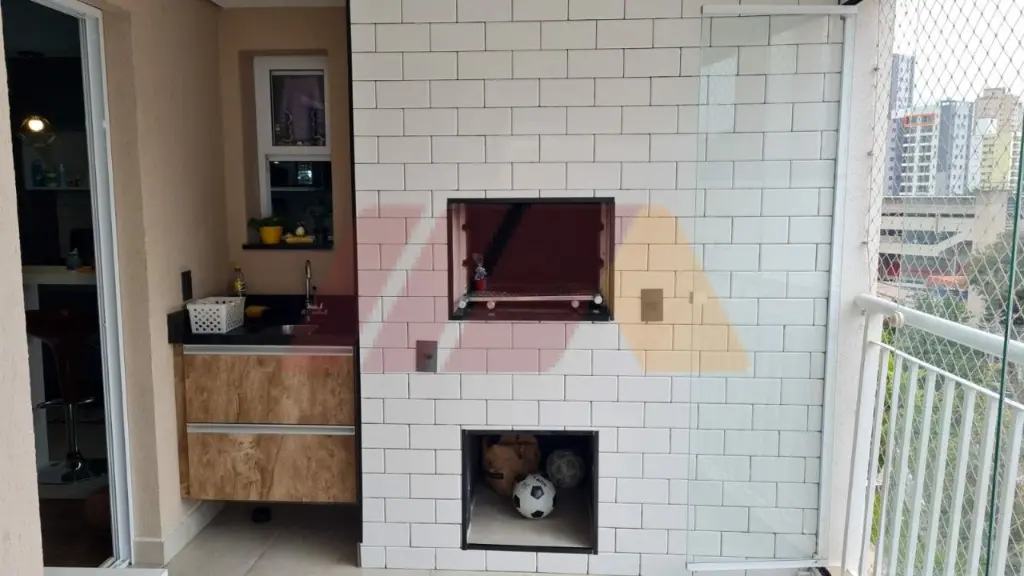 Varando Gourmet, com churrasqueira e fechamento com vidro.
