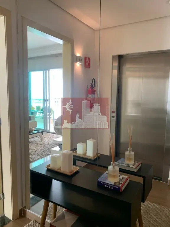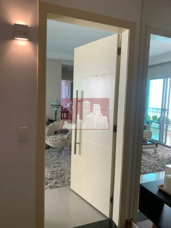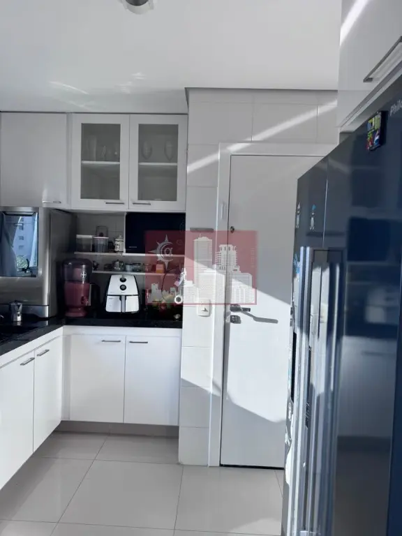 Sala ampla com dois ambientes, lavabo elegante, cozinha equipada com armários planejados, área de serviço e 3 vagas de garagem .