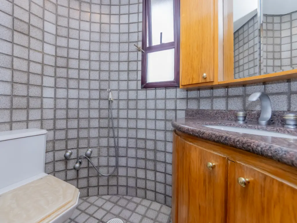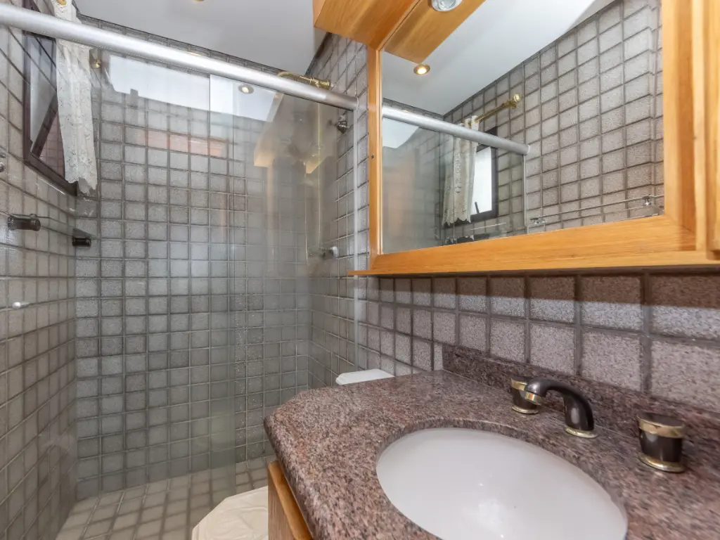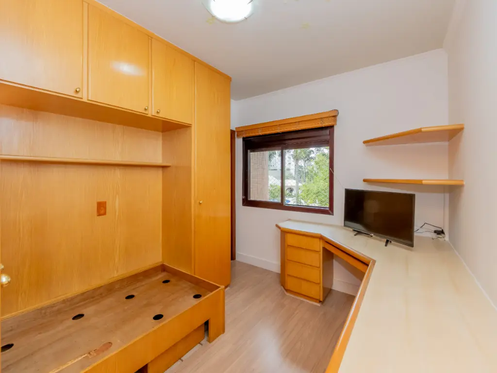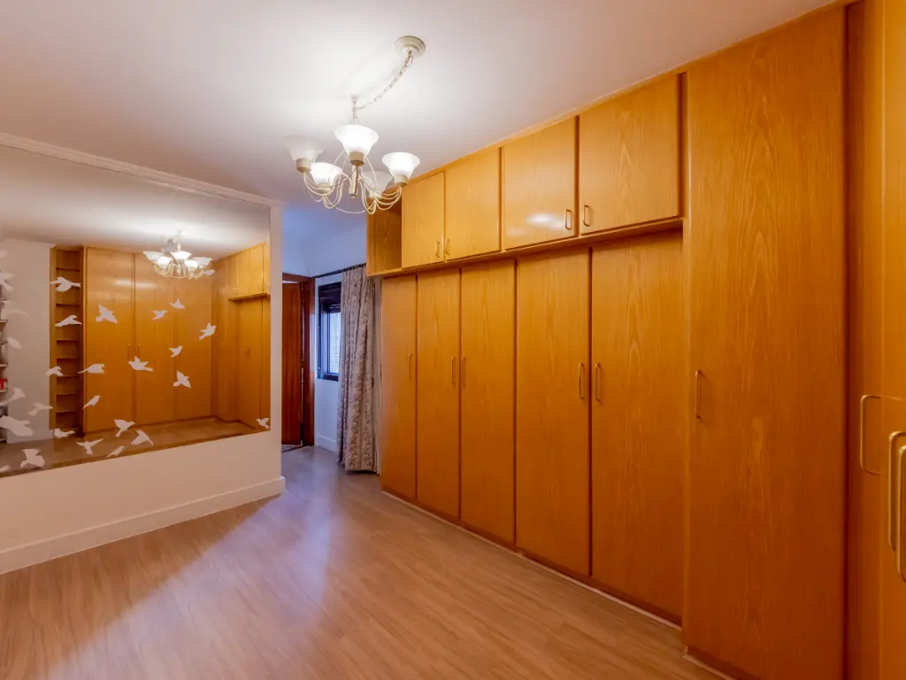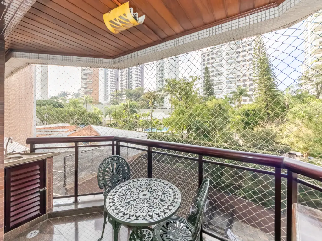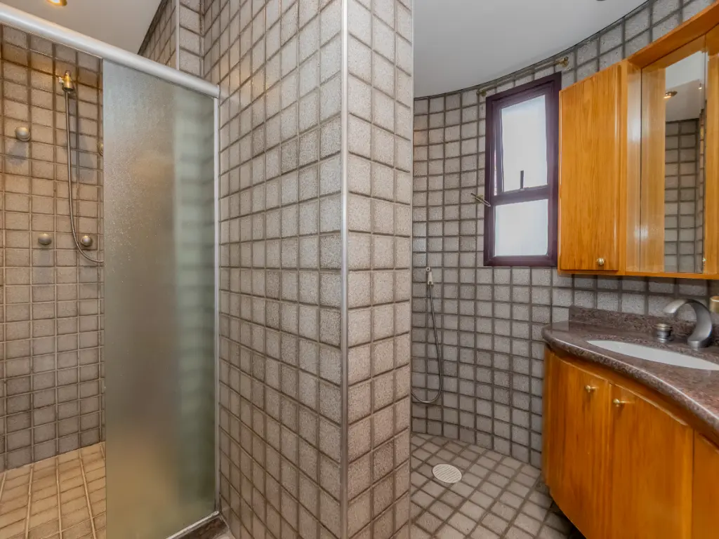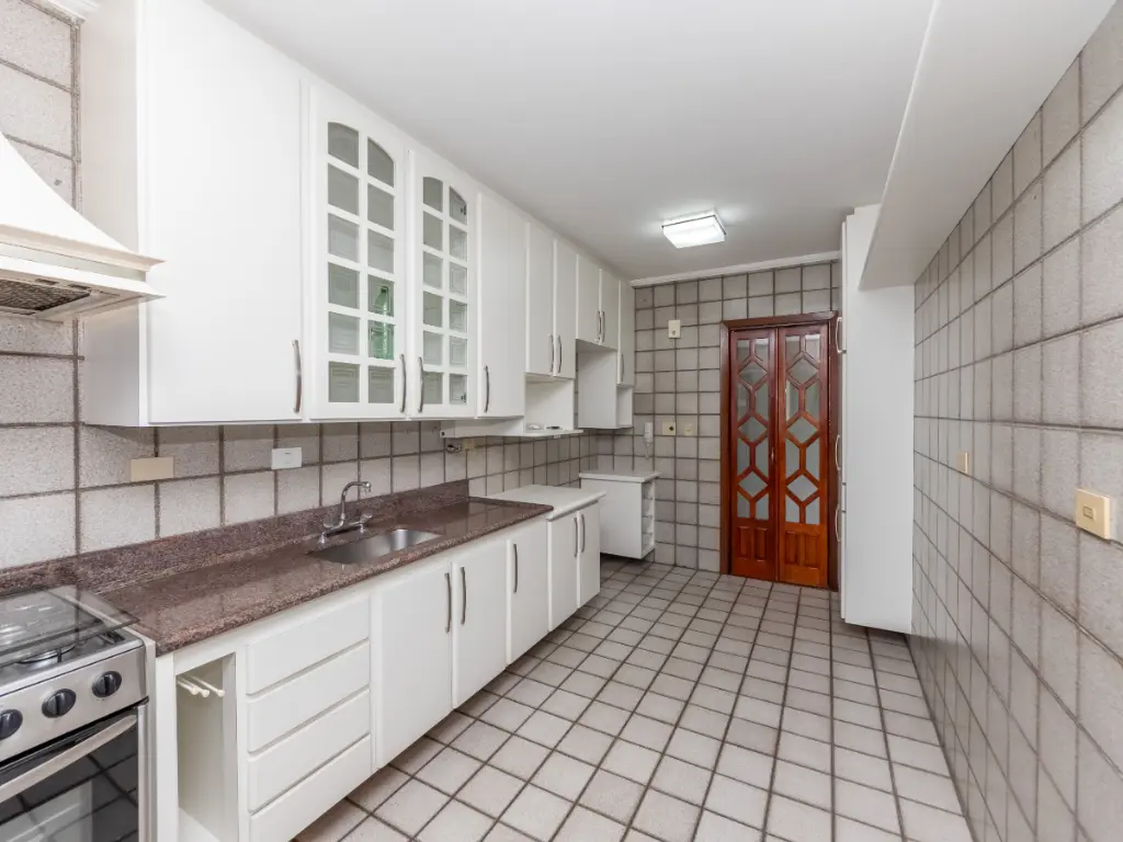 Possui cozinha ampla com móveis planejados, área de serviço independente, despensa, além de quarto e banheiro de serviço. São 5 banheiros no total e 3 vagas de garagem cobertas e determinadas.