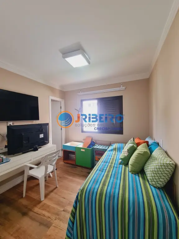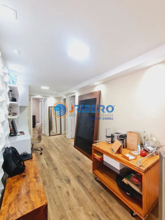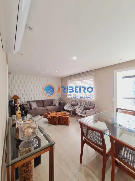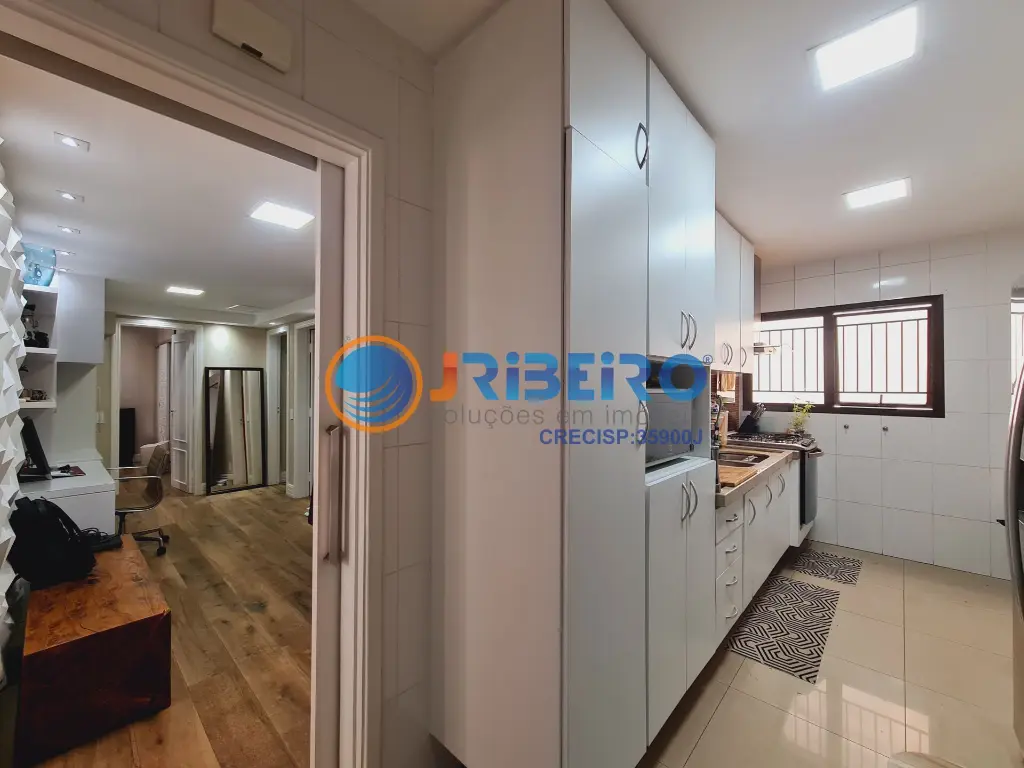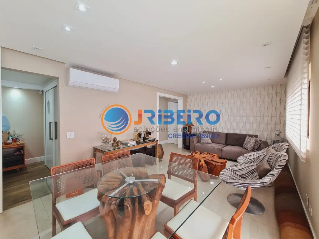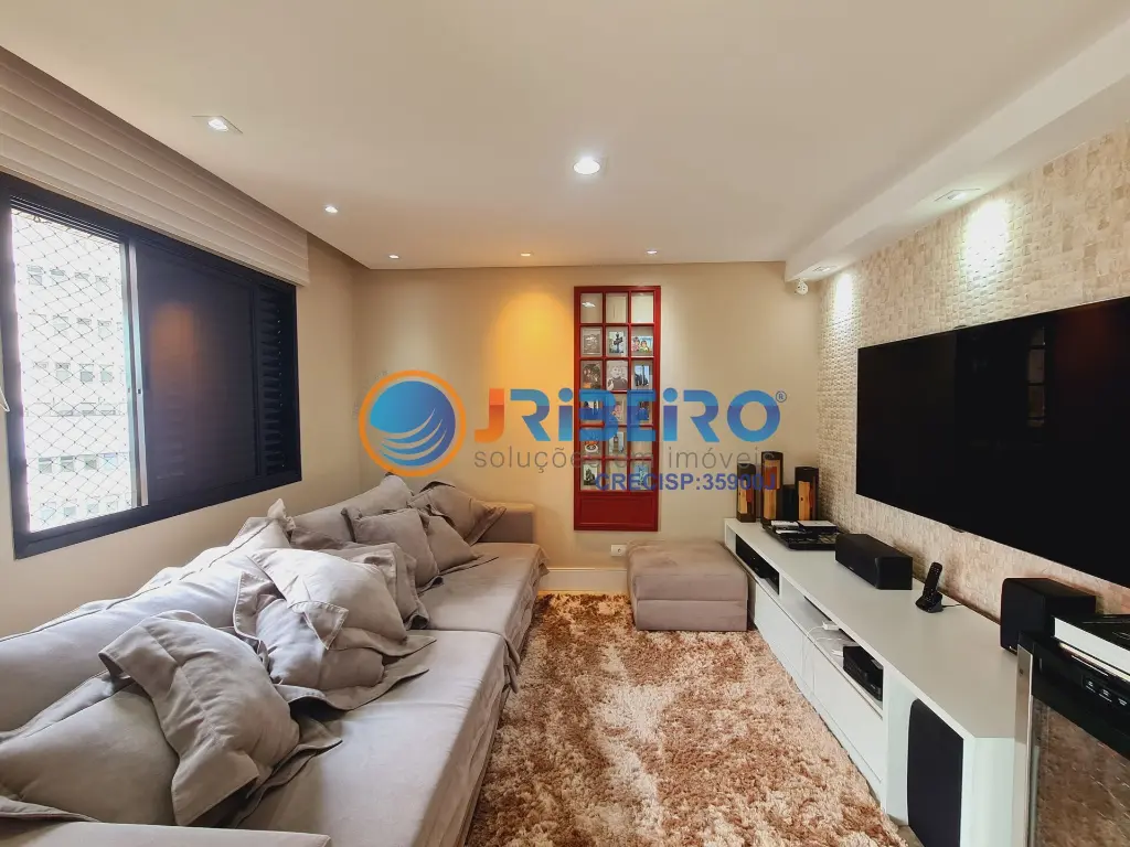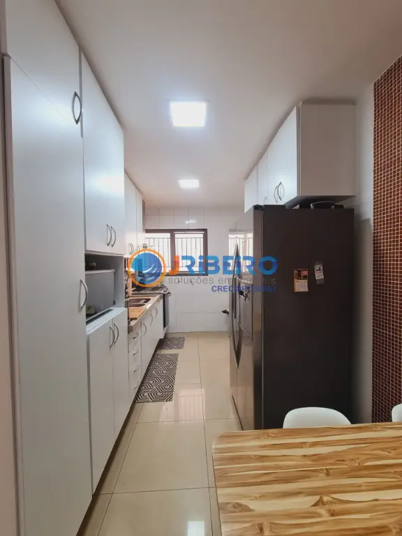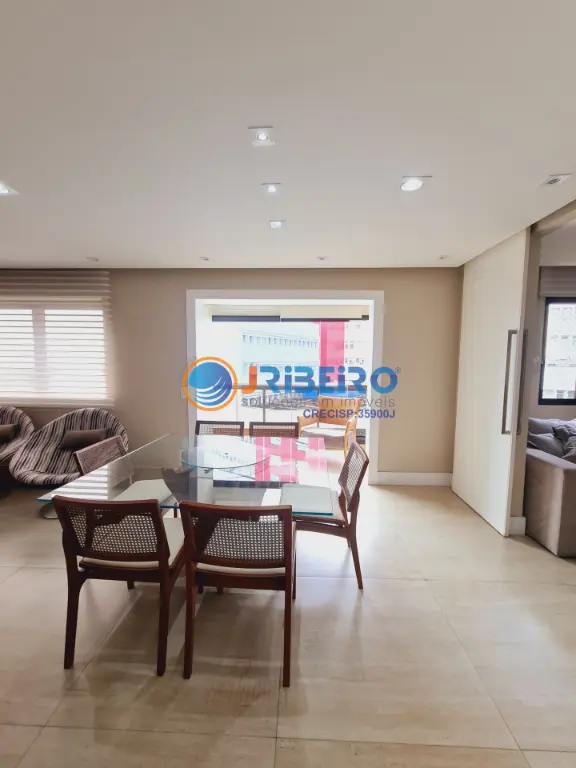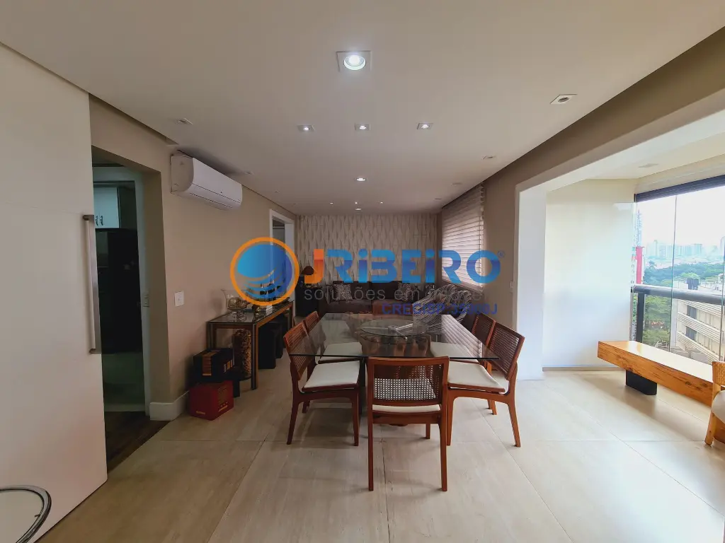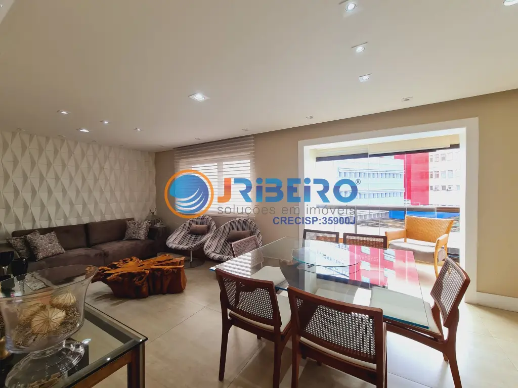 Apartamento de alto padra~o a' venda com 146 m2 de a´rea privativa, 4 dormito´rios sendo 3 sui´tes, 3 vagas de garagem, living para sala de estar, sala de jantar, sala de TV, varanda com fechamento em vidro, cozinha com arma´rios planejados e lavanderia.