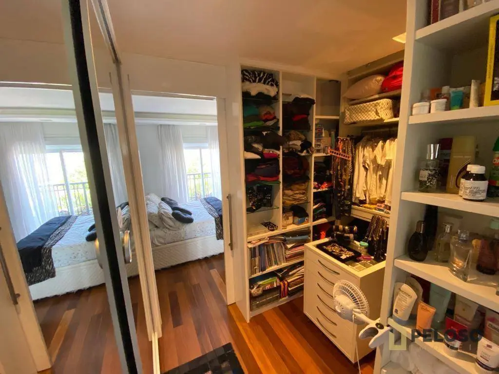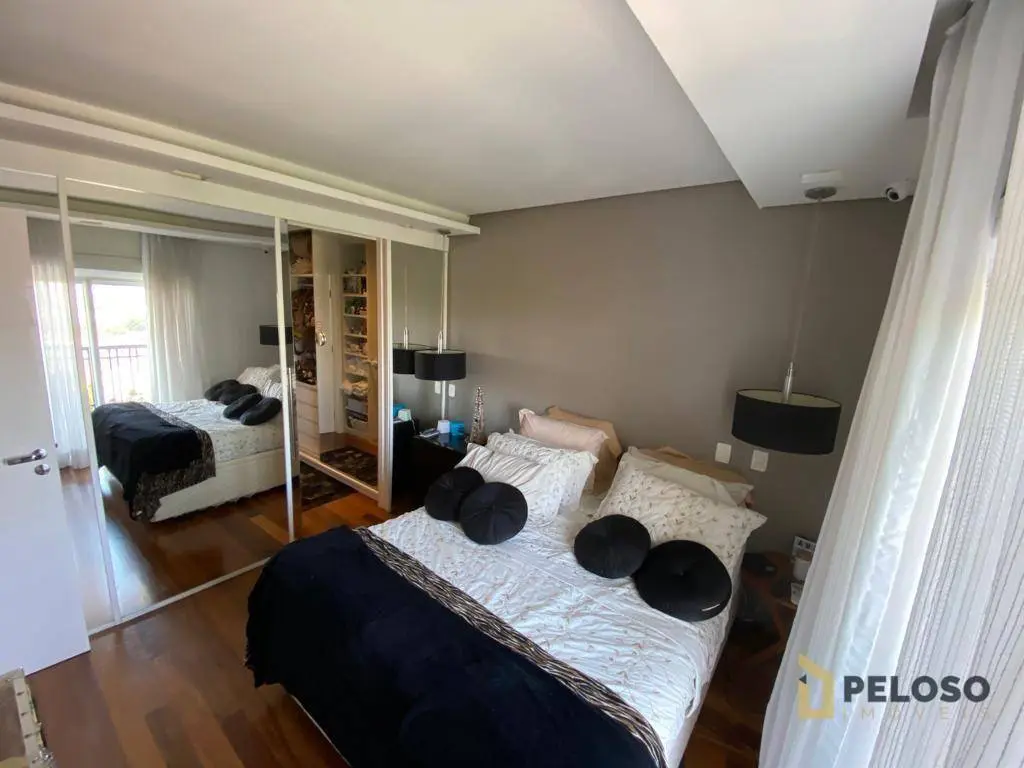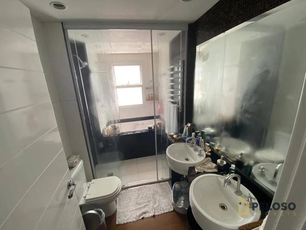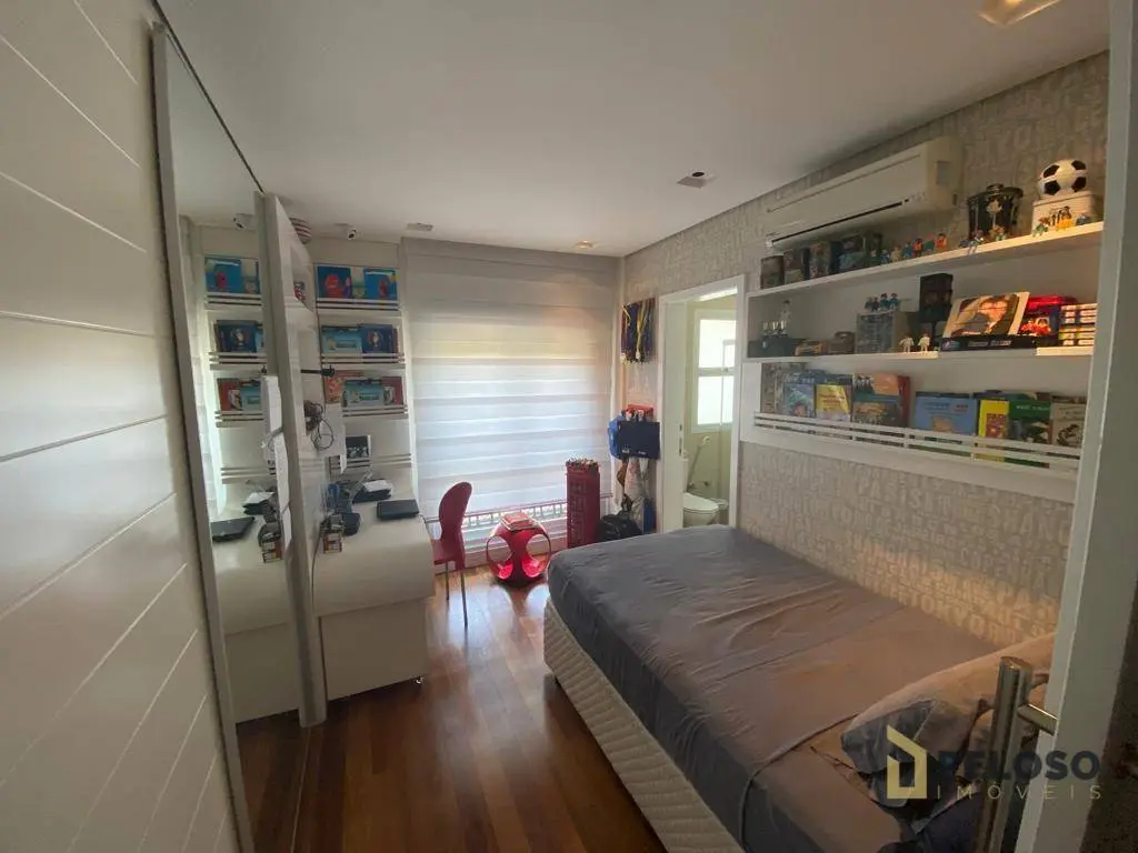 4 suítes, todas planejadas e com armários, ar-condicionado, sendo uma suíte master com closet e hidro, sala para 4 ambientes, sacada ampla e envidraçada com sistema de áudio com caixas de som no teto, lavabo, cozinha planejada, despensa e lavanderia, dependência de empregada com banheiro e 5 vagas de garagem com depósito individual.