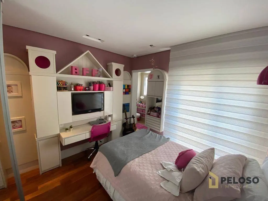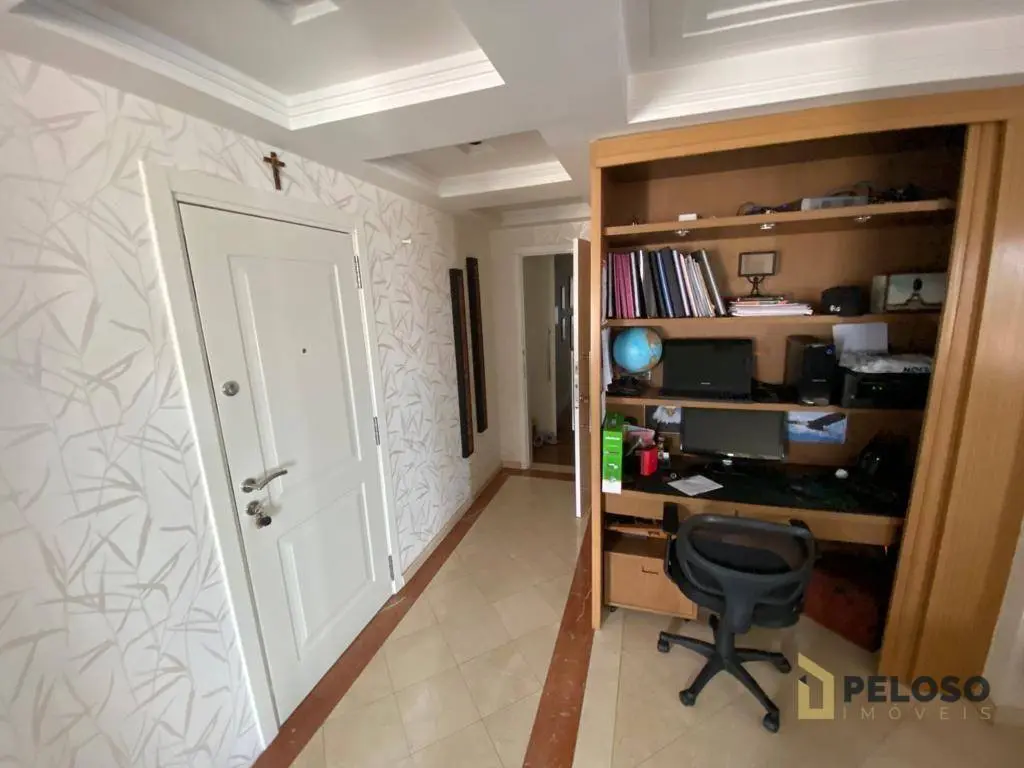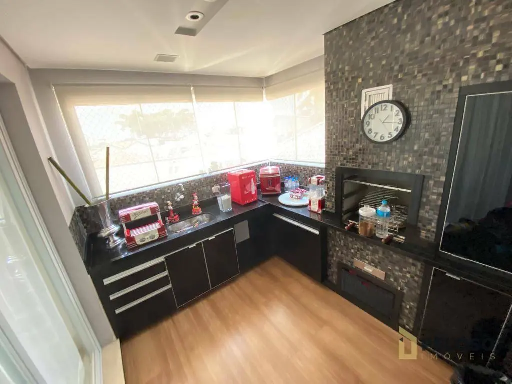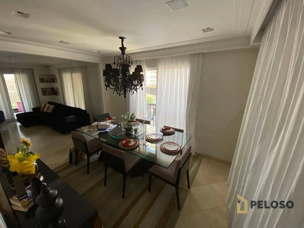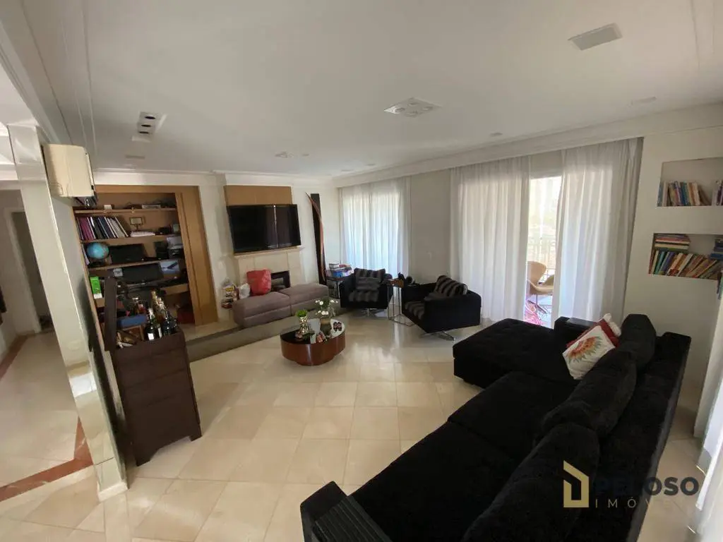 4 suítes, todas planejadas e com armários, ar-condicionado, sendo uma suíte master com closet e hidro, sala para 4 ambientes, sacada ampla e envidraçada com sistema de áudio com caixas de som no teto, lavabo, cozinha planejada, despensa e lavanderia, dependência de empregada com banheiro e 5 vagas de garagem com depósito individual.