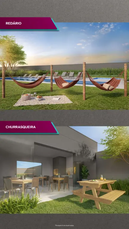 Condomínio com lazer completo: piscina, academia, quadra esportiva, lavanderia coletiva, áreas de convivência.
