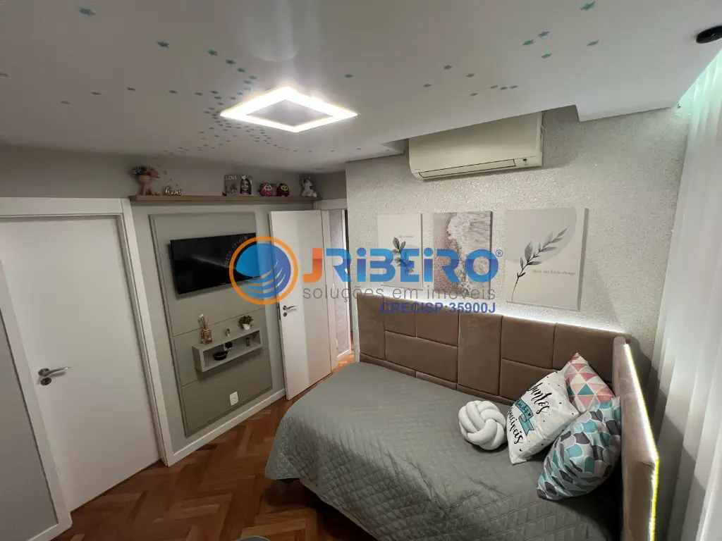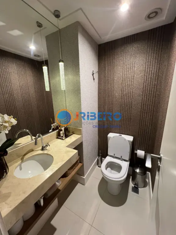 3 sui´tes, sala 3 ambientes com hall e lavabo. Sacada com churrasqueira, Cozinha, a´rea de servic¸o com banheiro, ar condicionado nos quartos e salas. Automac¸o~es por alexa (cortina, luzes, ar condicionado, aquecimento de agua...) 3 vagas de garagens e depo´sito