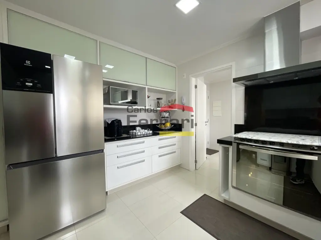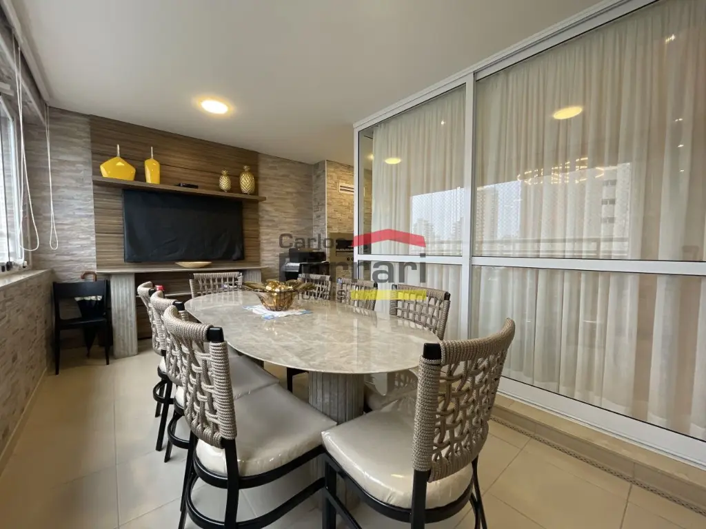 A planta é bem distribuída, com sala ampla para dois ambientes, lavabo e integração com a varanda gourmet envidraçada, equipada com churrasqueira. Espaço ideal para receber convidados e aproveitar momentos em família. O imóvel conta com porcelanato nas áreas sociais, piso laminado nos dormitórios, armários embutidos, cozinha planejada, dependência de empregados, aquecimento a gás, interfone e fechamento em vidro tipo blindex, proporcionando mais conforto térmico e acústico.