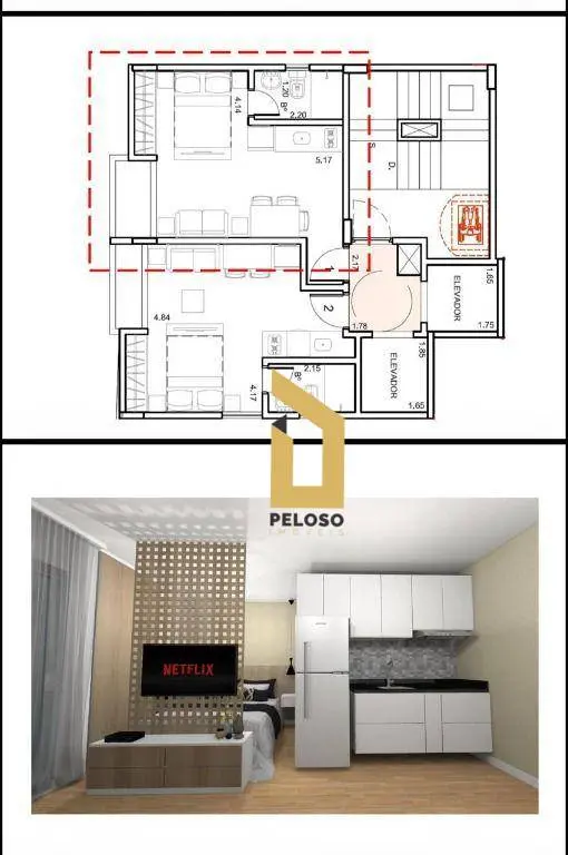 Conceito aberto e elegante com 1 banheiro, varanda,